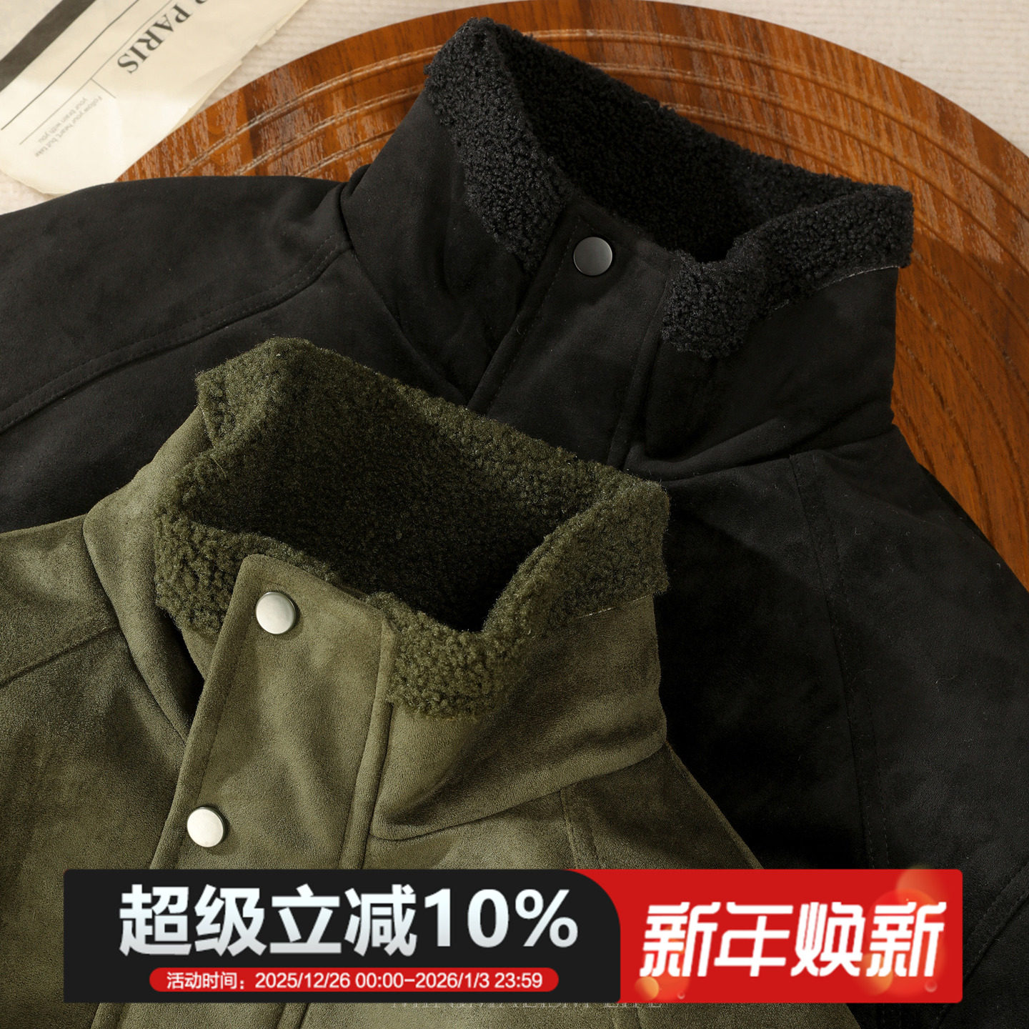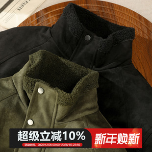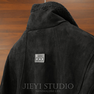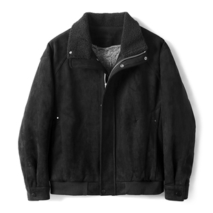 JIEYI 加厚羊羔绒皮毛一体外套冬日通勤局部夹棉麂皮绒雾面夹克男