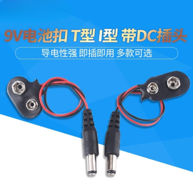 DC头电池盒接9V蓄电池 2.1MM 9v电池扣线I型 T字带电源插头带5.5