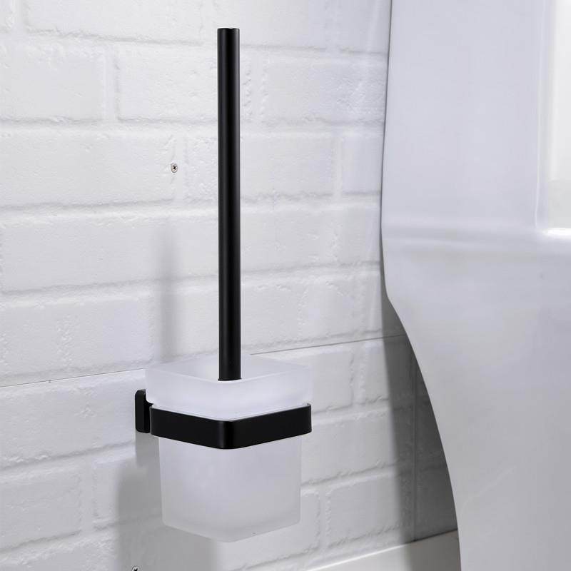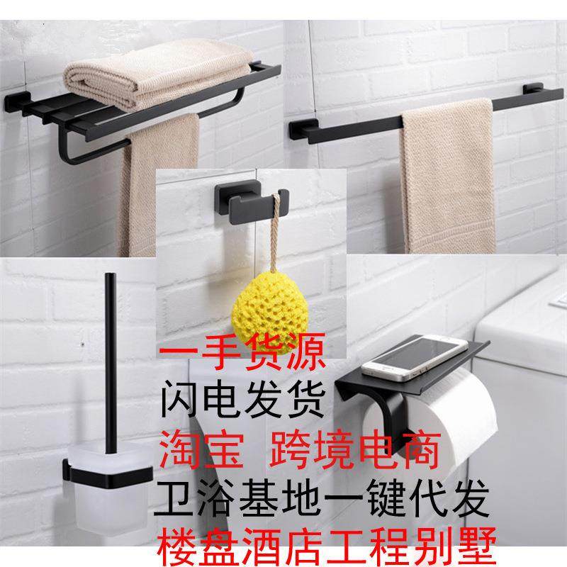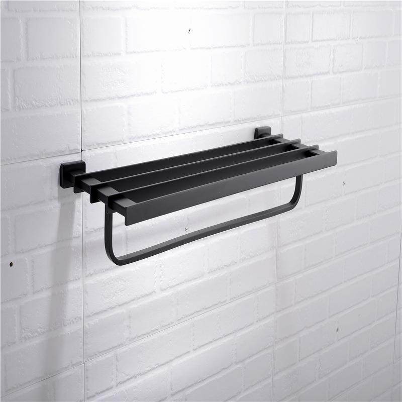 沐全黑色库毛巾架铜毛巾杆双层巾RPI架卫生间五金挂件套浴装 防滑