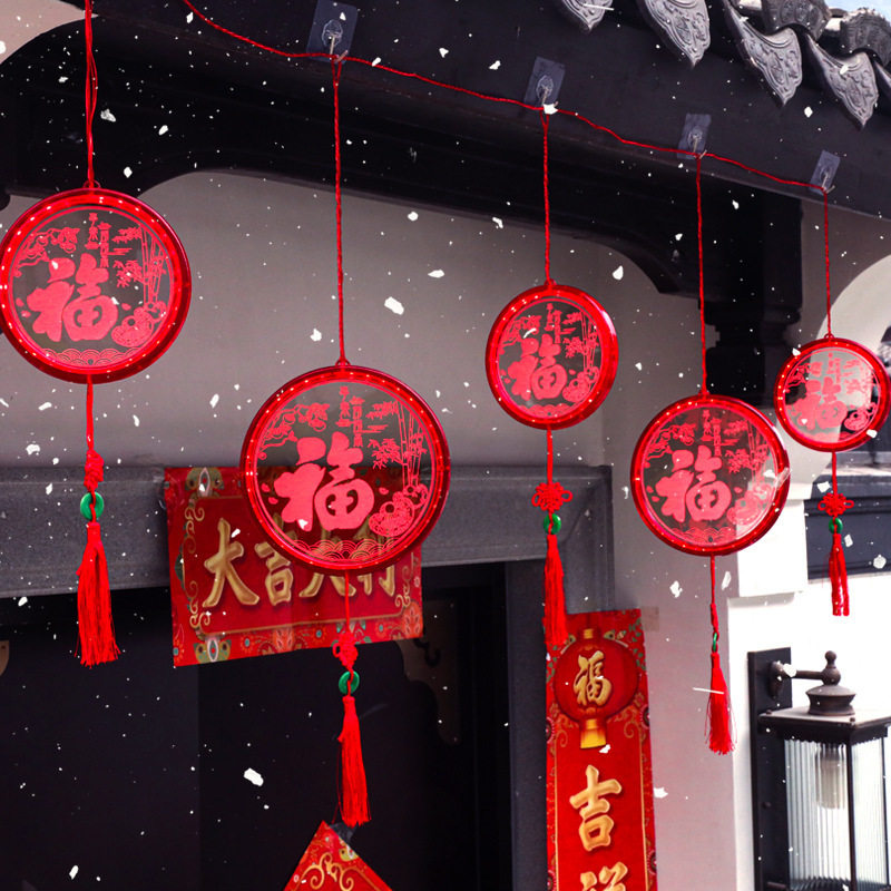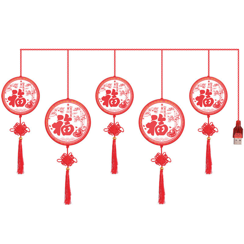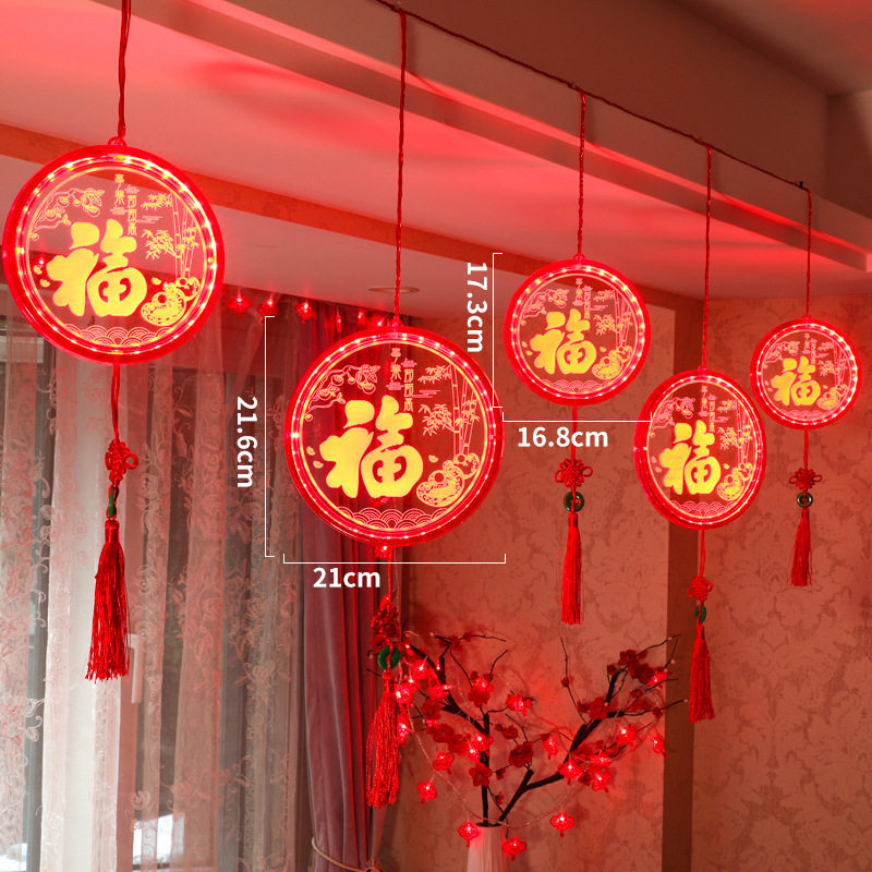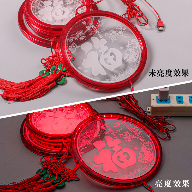 2024春节新年装 饰用品房间布置发光福字挂灯USB亚克力氛围窗帘灯
