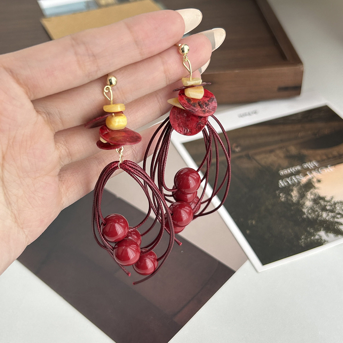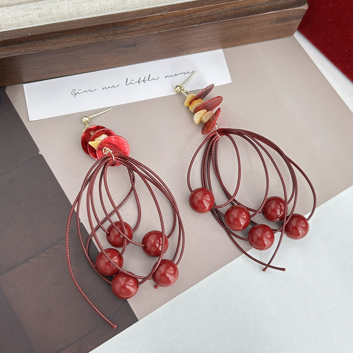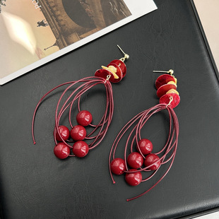 老钱风金色圆片长款 流苏耳环女轻奢高级感夸张耳钉方圆脸绝美耳饰