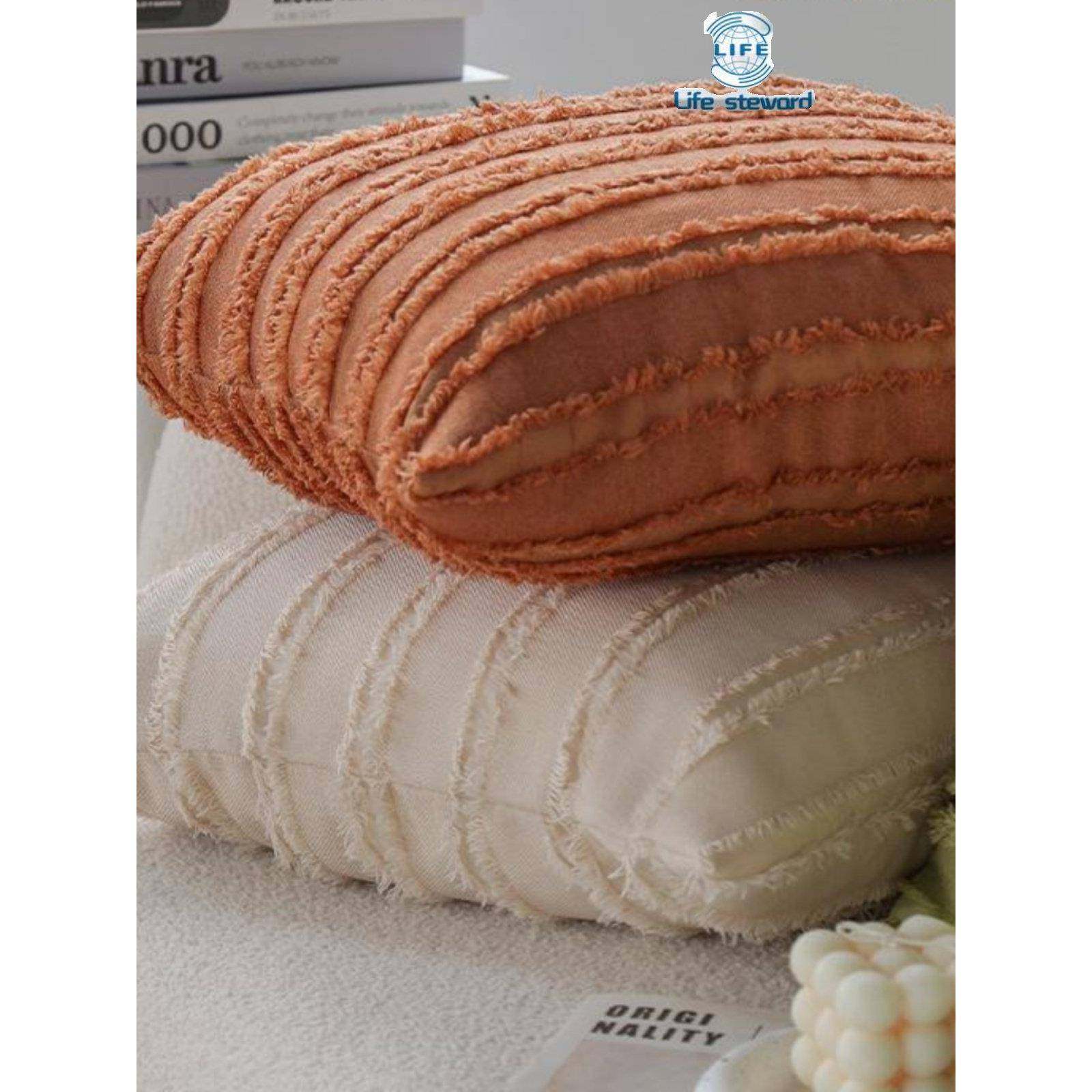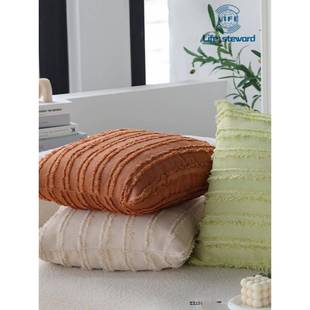 pillow cover 流苏装 饰棉麻纯色抱枕套靠垫套靠包套靠枕套cushion