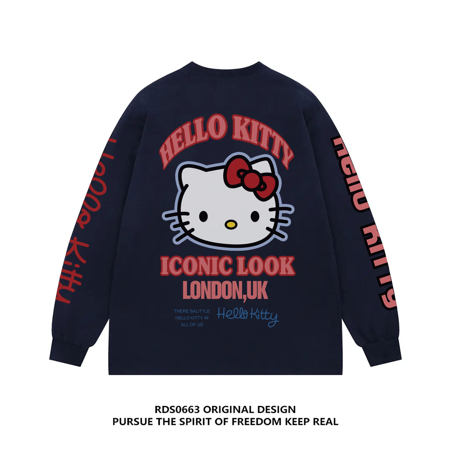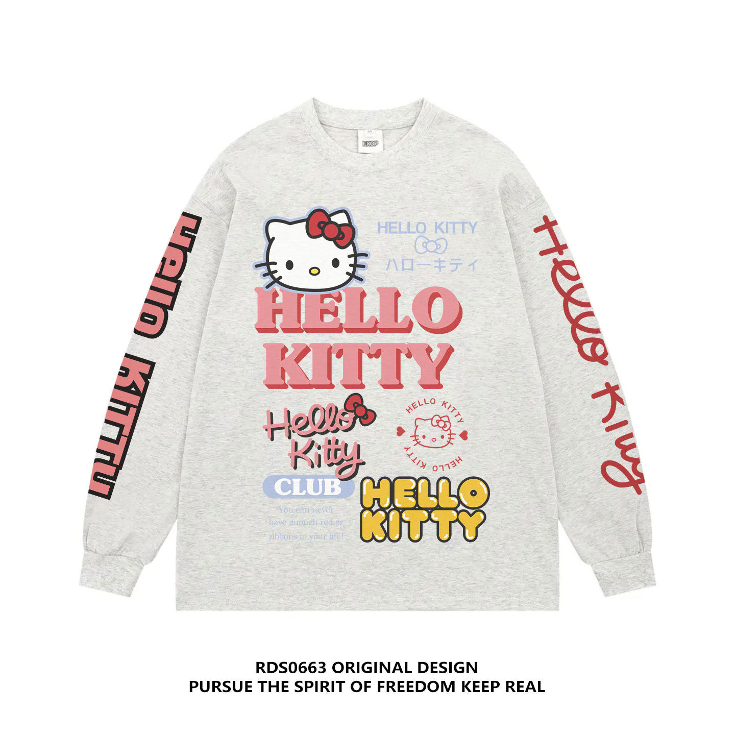 凯蒂猫印花男女秋长袖 钱 T恤潮流HelloKitty上衣 Money数我 Cash