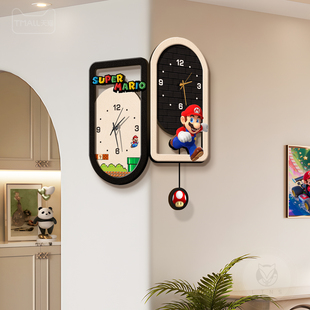 新中式 免打孔卡通大气时钟挂墙电波钟表 招财猫挂钟客厅家用时尚