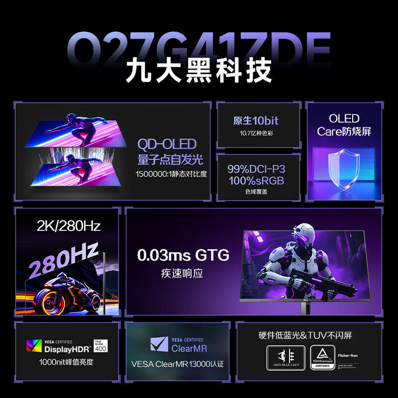 AOC26.5英寸2K高分280Hz刷新QD OLED量子点HDR400显示器Q27G41ZDE