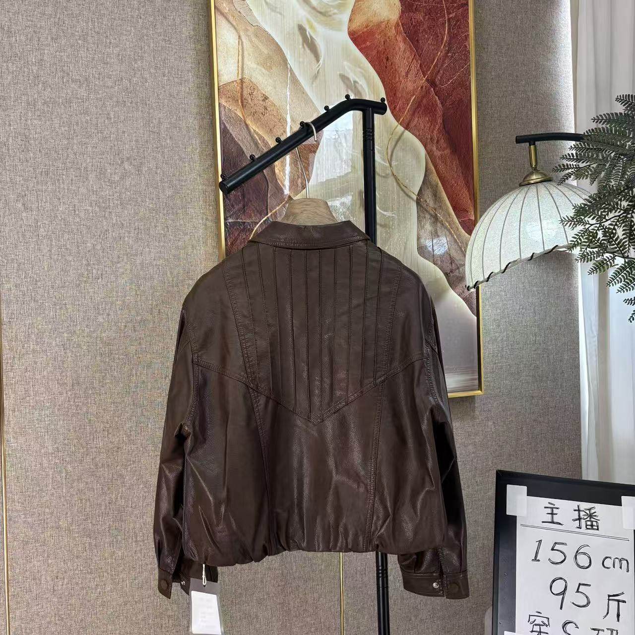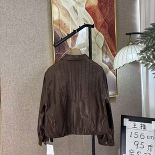 酷感蝴蝶花刺绣做旧皮夹克 皮衣外套秋季 KEIKO 巴恩风穿搭棕色短款