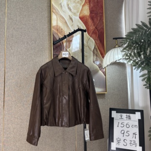 AZure温柔风修身 复古短外套真皮工艺人造革环保皮上衣 pu皮衣法式