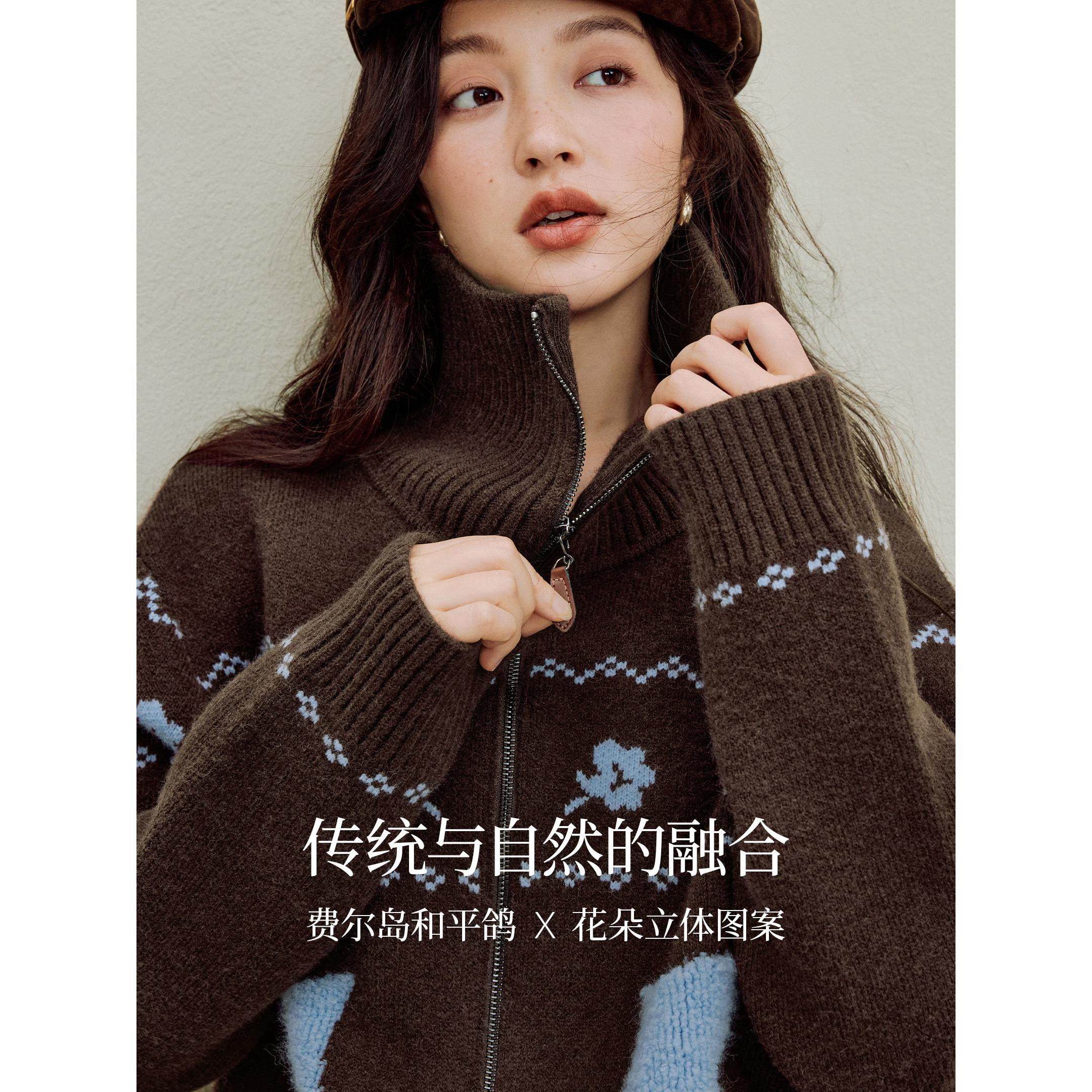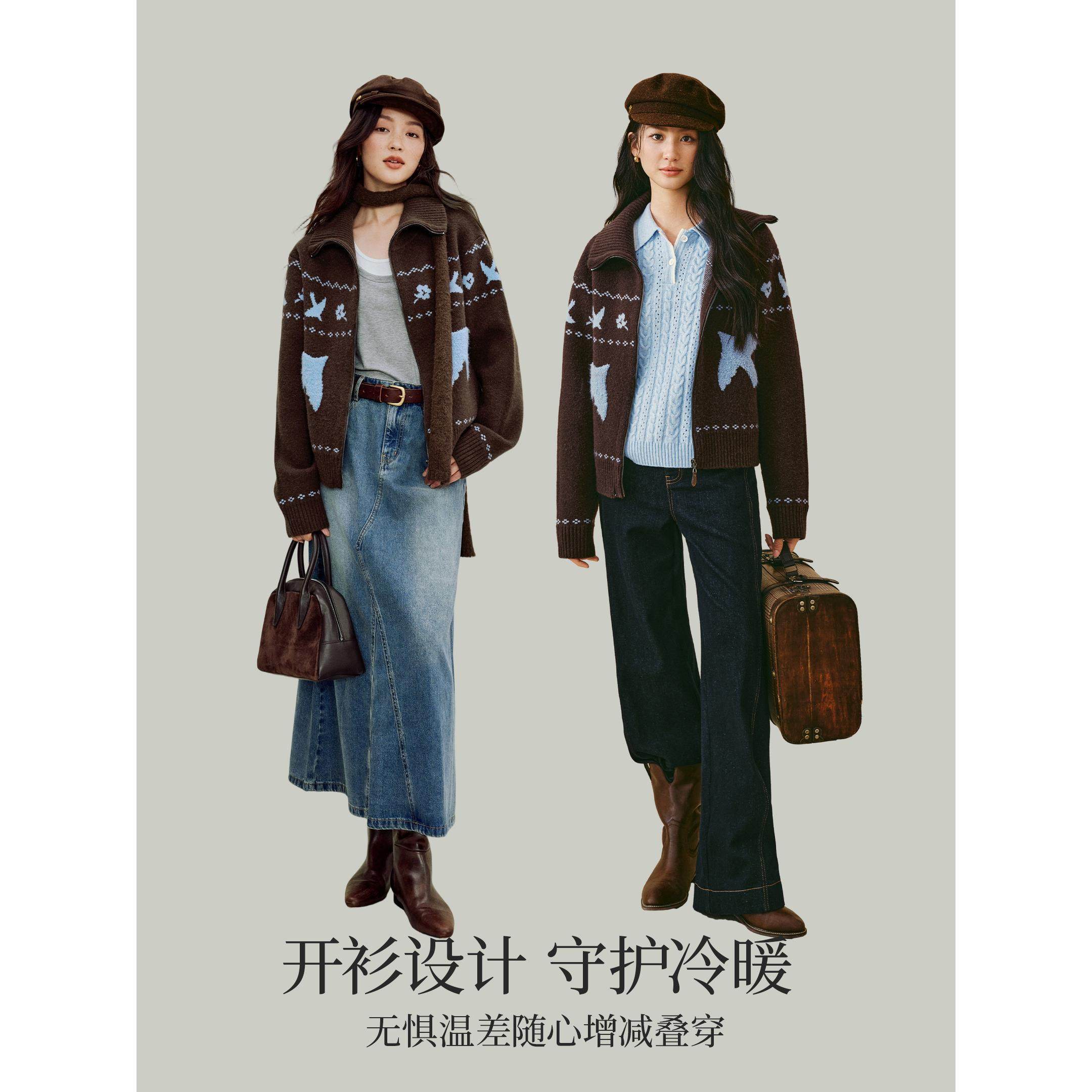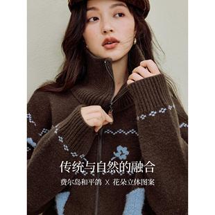 咖针织开衫 热可可系列 北极绒费尔岛翻领通勤毛衣外套女2025秋季