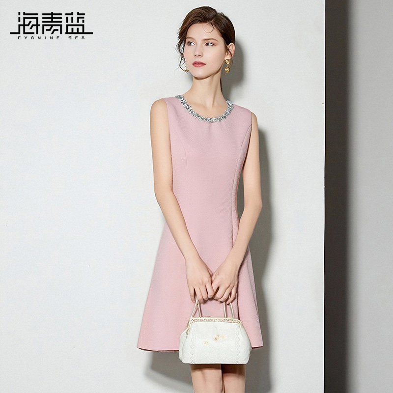 无袖 中长款 连衣裙2025年秋冬新款 高级修身 背带裙 纯色女装 海青蓝
