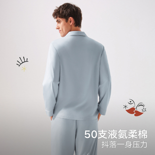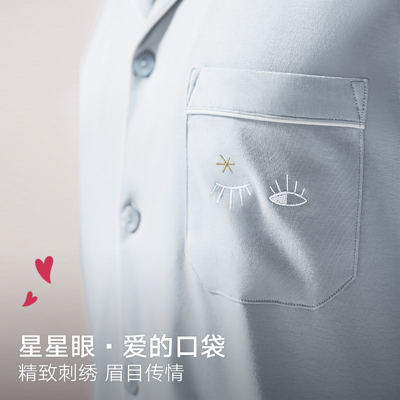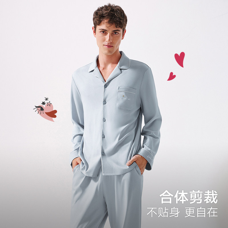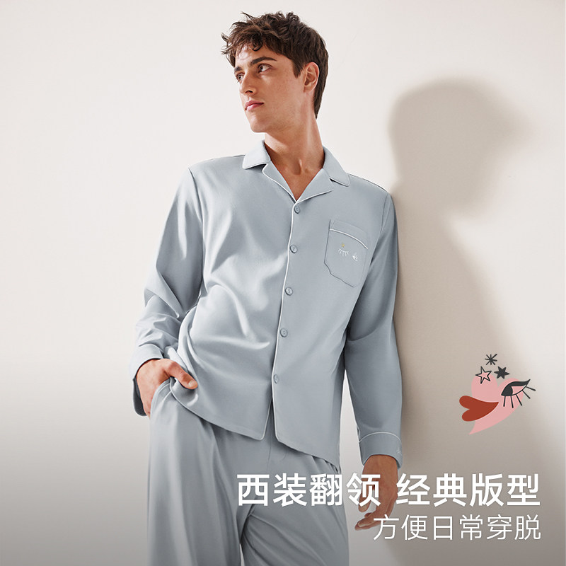 翻领开襟长袖 家居服睡衣睡裤 长裤 男士 起居服 套装 曼妮芬舒适西装