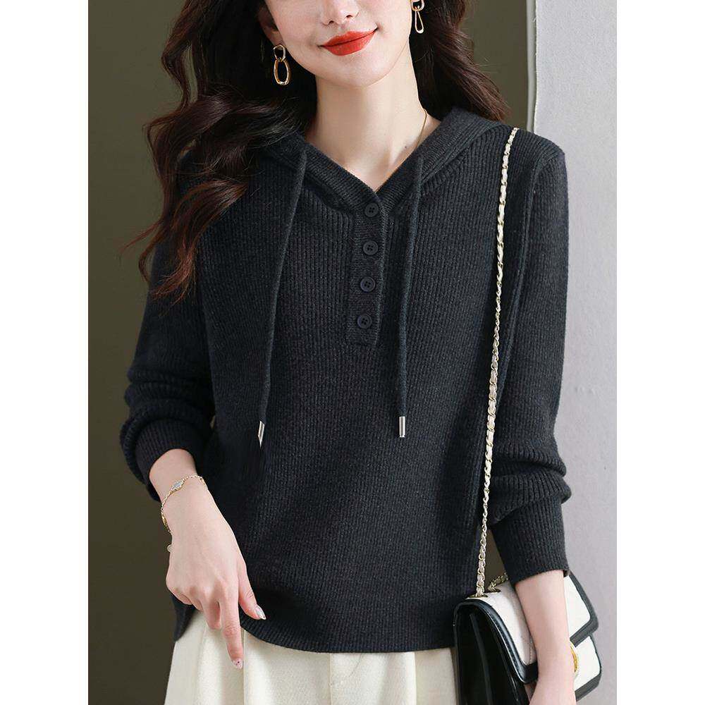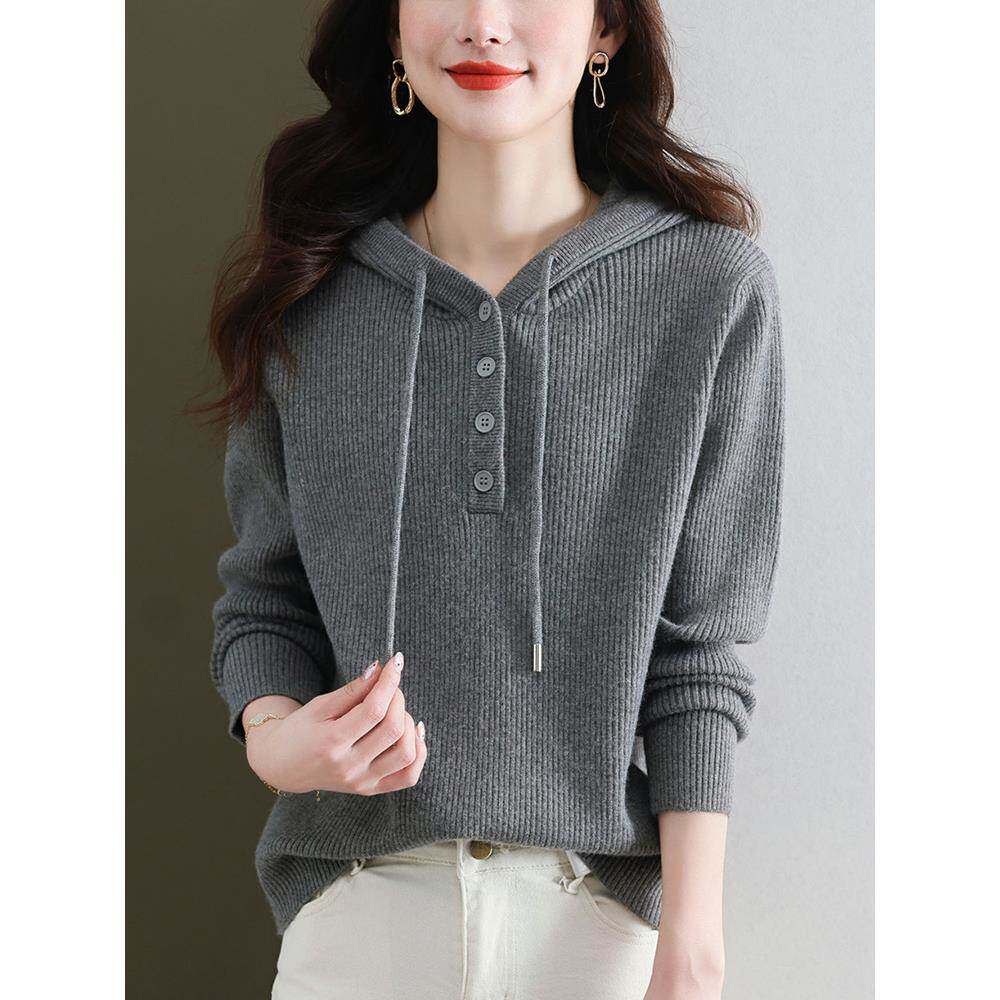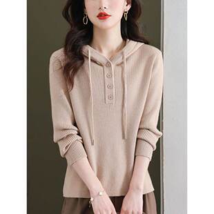 连帽毛衣女秋冬2025新款 春秋上衣 宽松休闲红色带帽卫衣针织打底衫