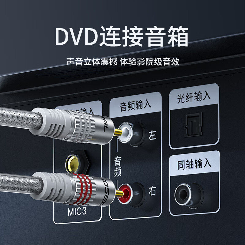 秋叶原双莲花音频线2RCA头二对二梅花插头线红白莲花线音响连接线