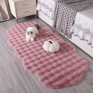 泡泡绒卧室地毯不规则高级客厅茶几异形床边衣帽间奶油风飘窗地垫
