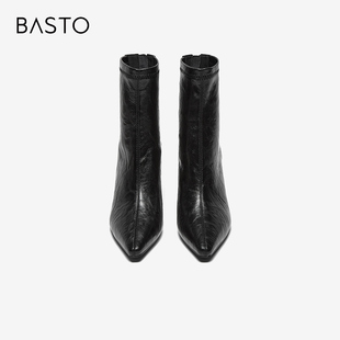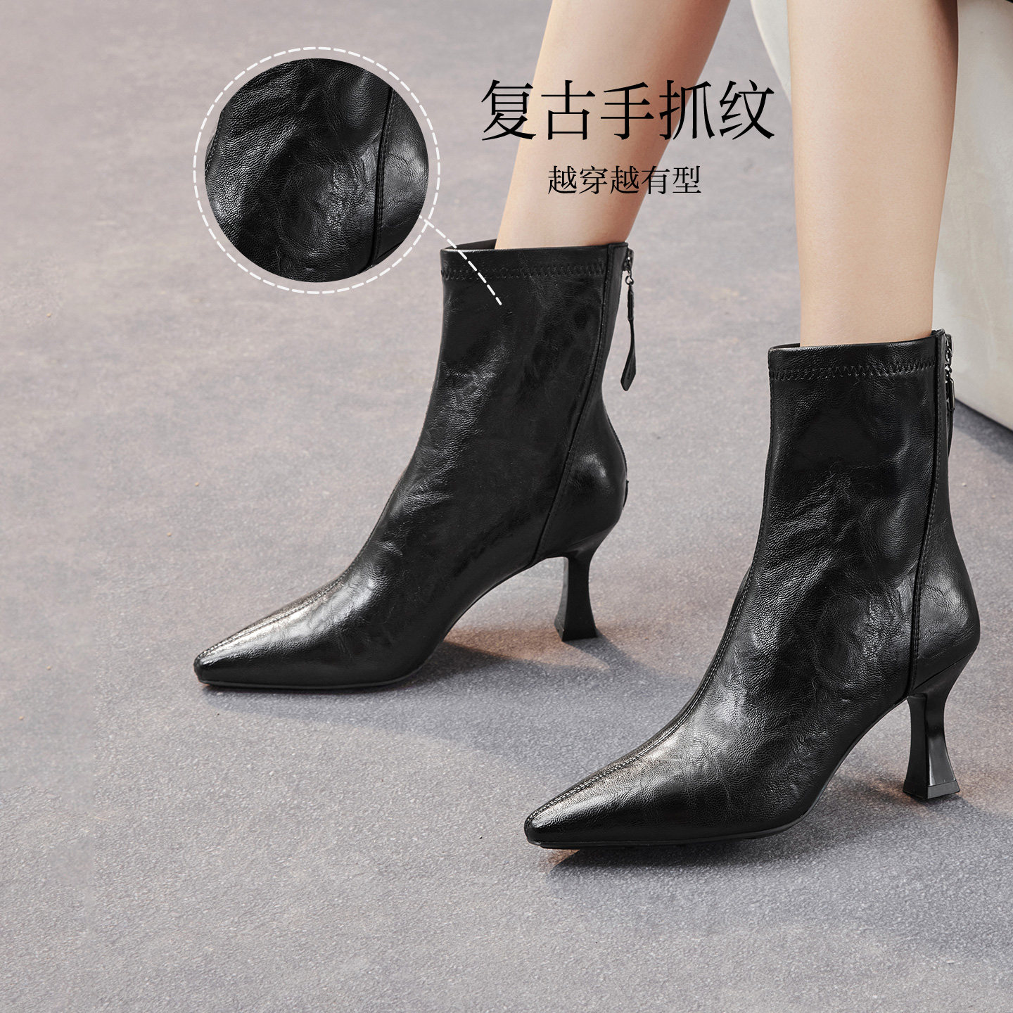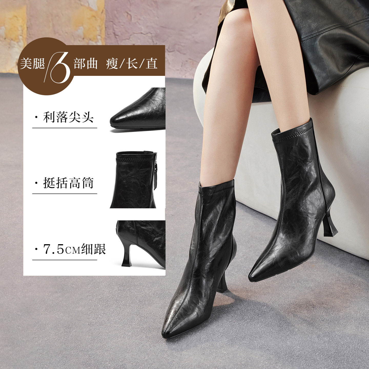 靴简约潮流细高跟尖头女短靴F5303DZ5 时装 百思图2025冬季 新款