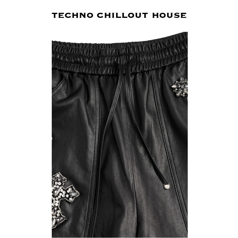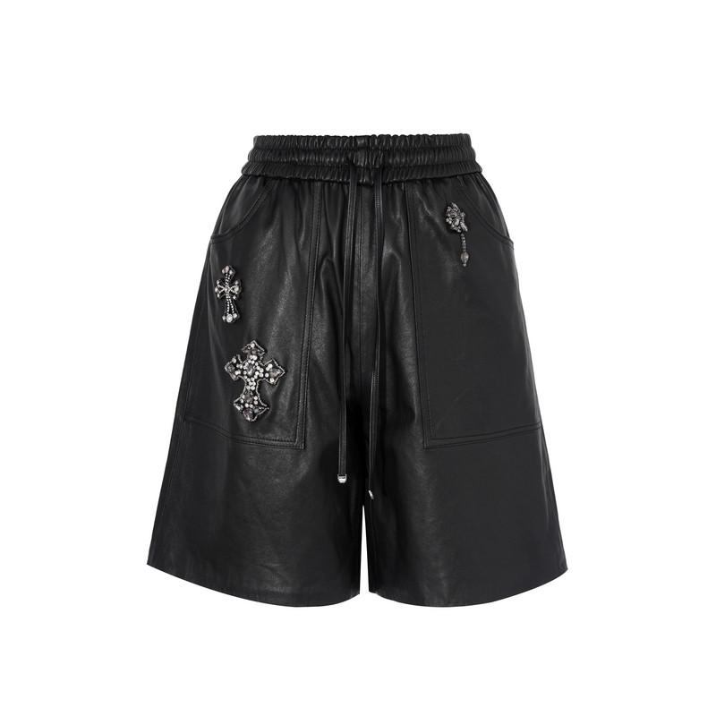 女宽松显瘦休闲裤 TCH私服烫钻2025秋季 短裤 皮裤 T75C21E5011 新款