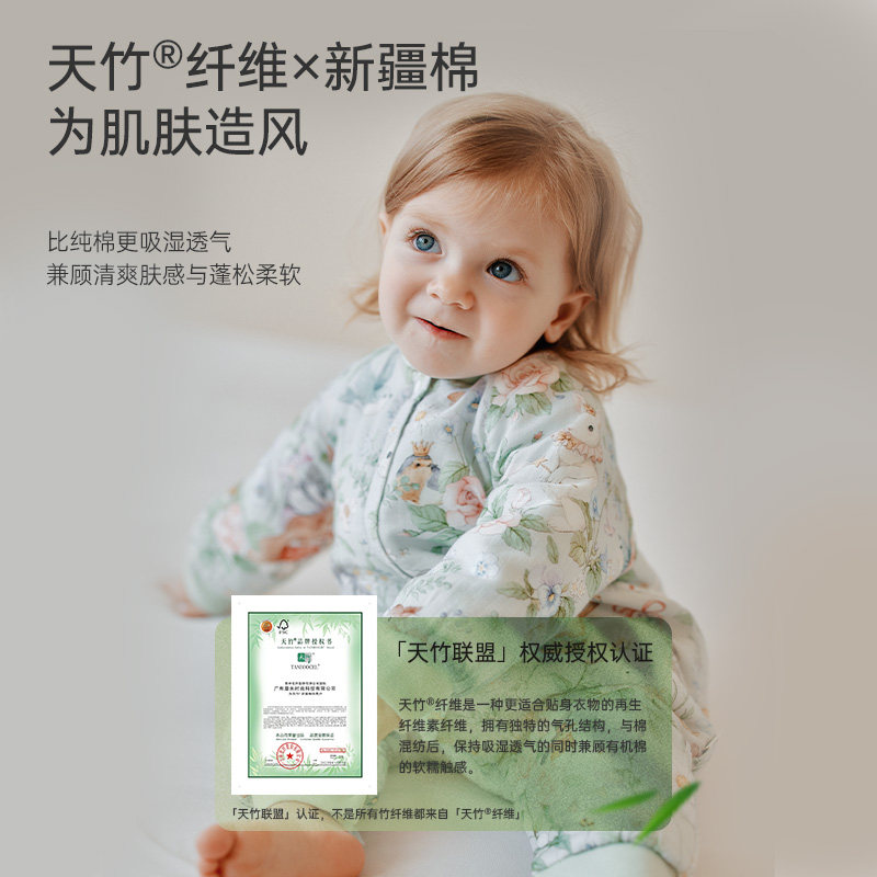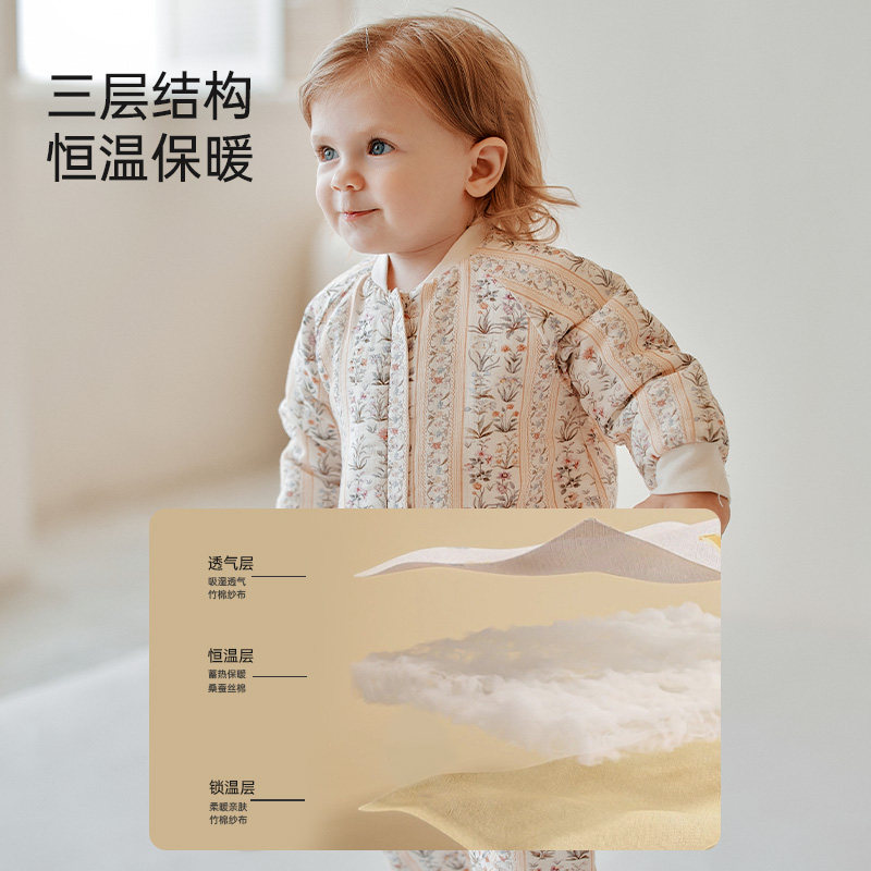 秋冬竹棉纱布夹棉宝宝睡袋加厚防踢被婴儿睡衣 新品 Oak Family