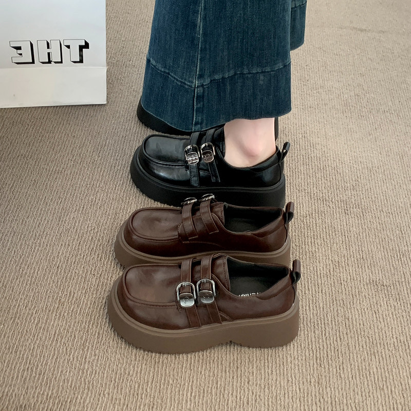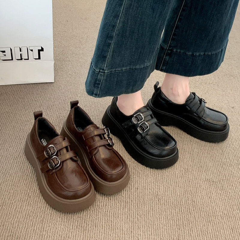 勃肯单鞋 棕色复古松糕厚底增高乐福鞋 英伦风小皮鞋 新款 女2025秋季