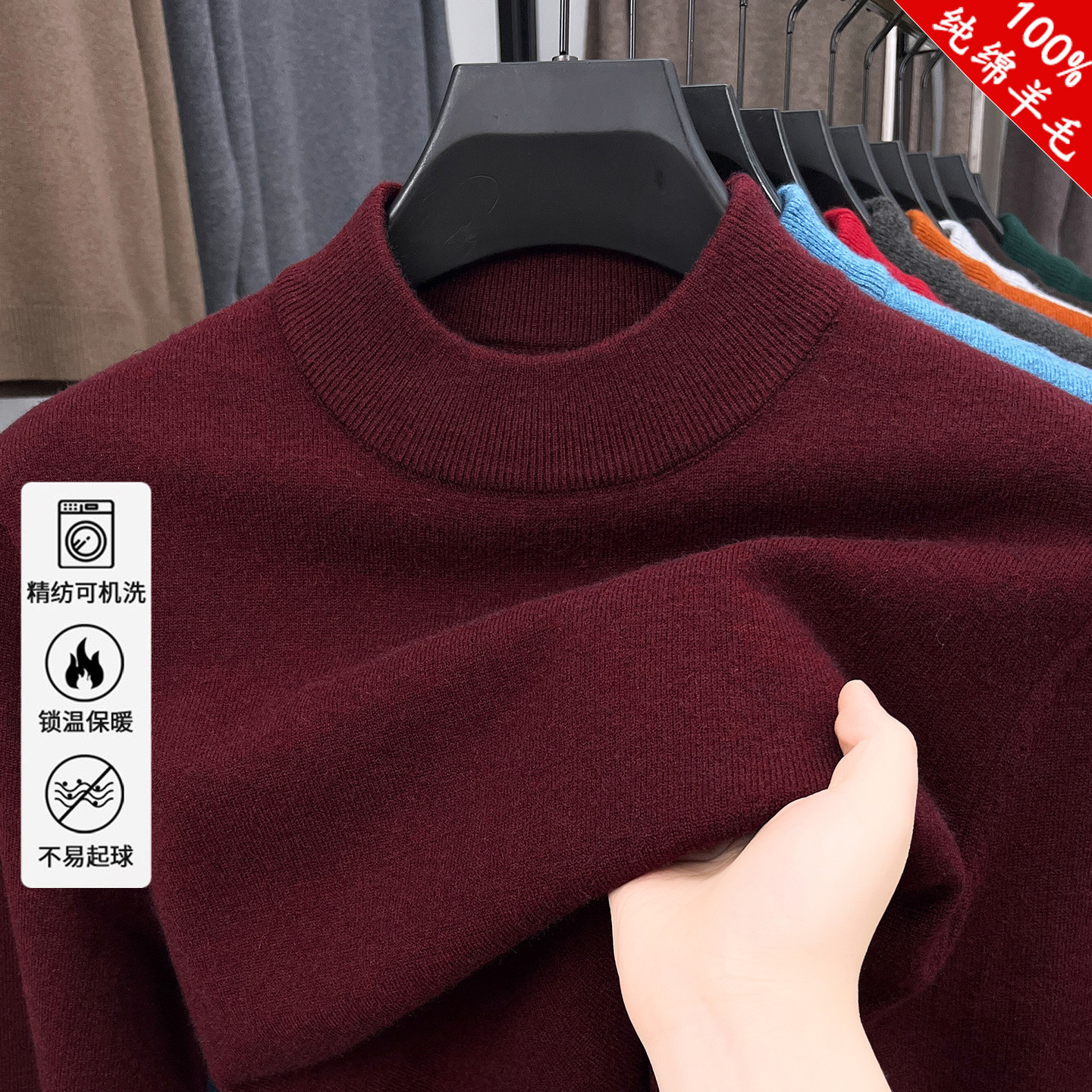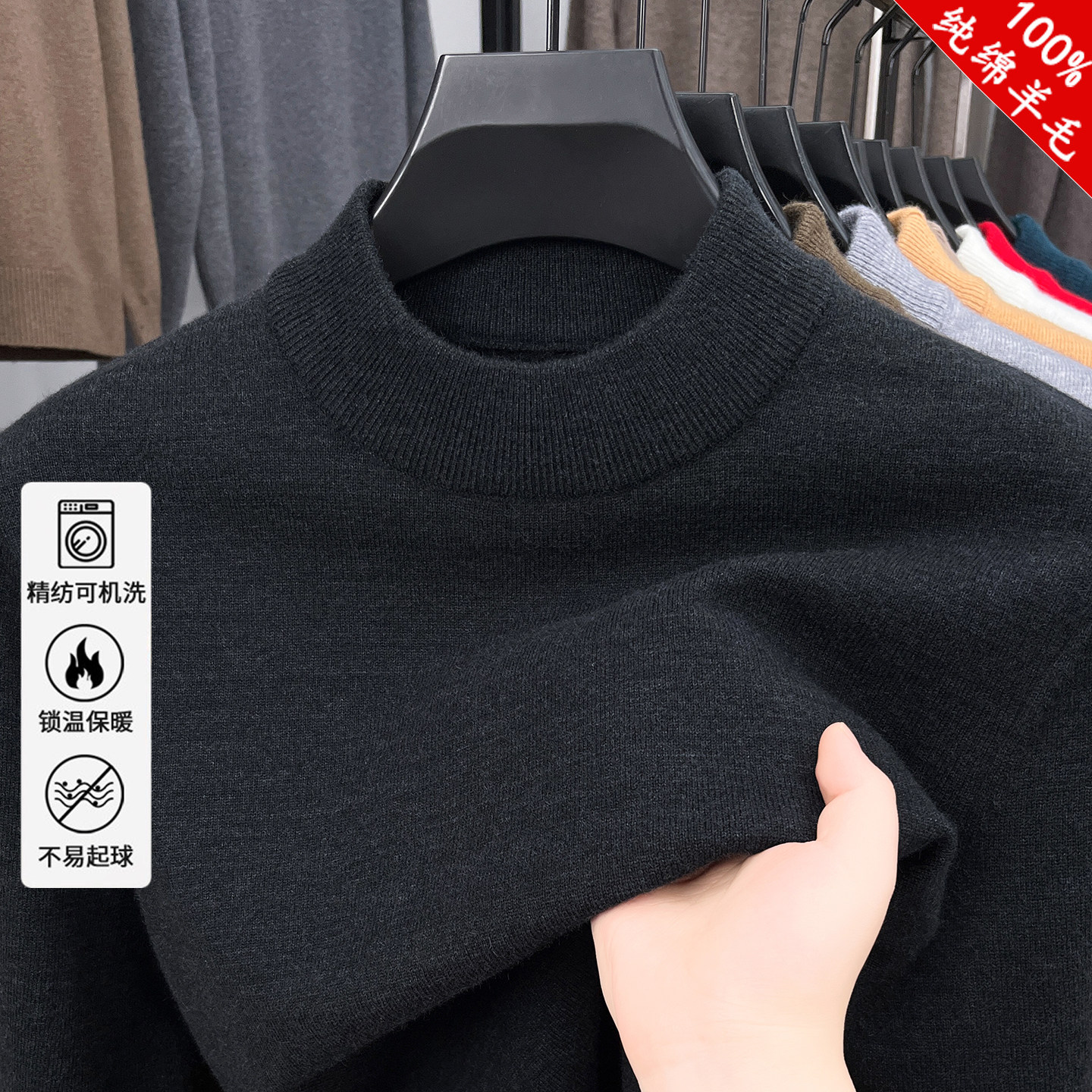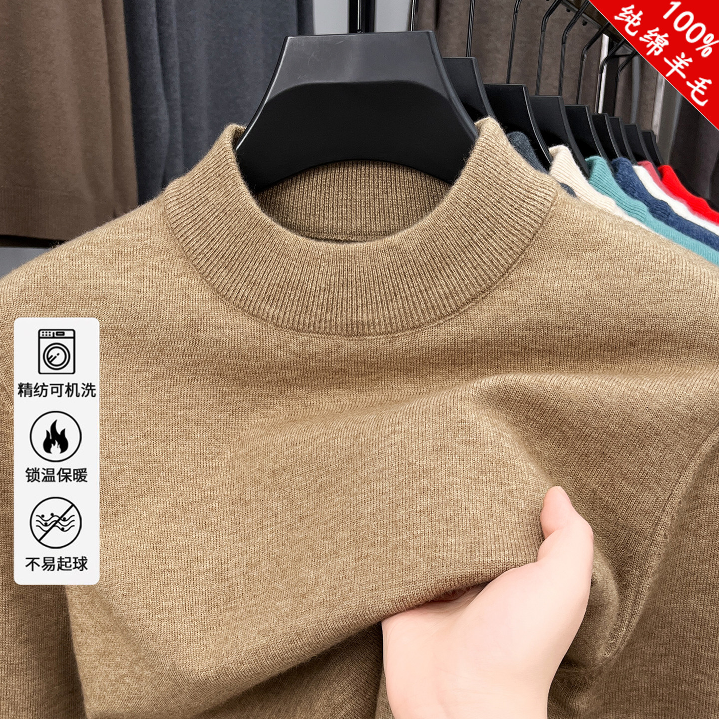 中年爸爸秋冬装 针织打底纯色厚毛衣2025新款 半高领男士 濮院羊毛衫