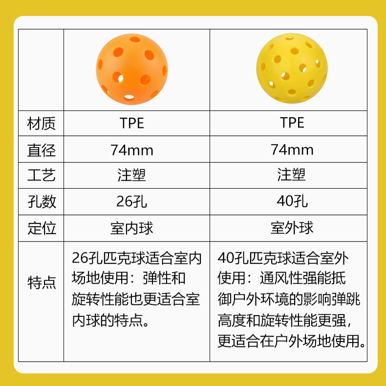 pickleball匹克球比赛运动专业洞洞训练球26 40孔室内室外训练球