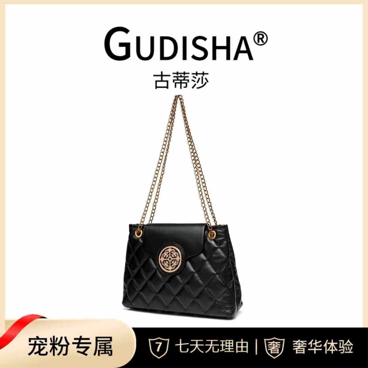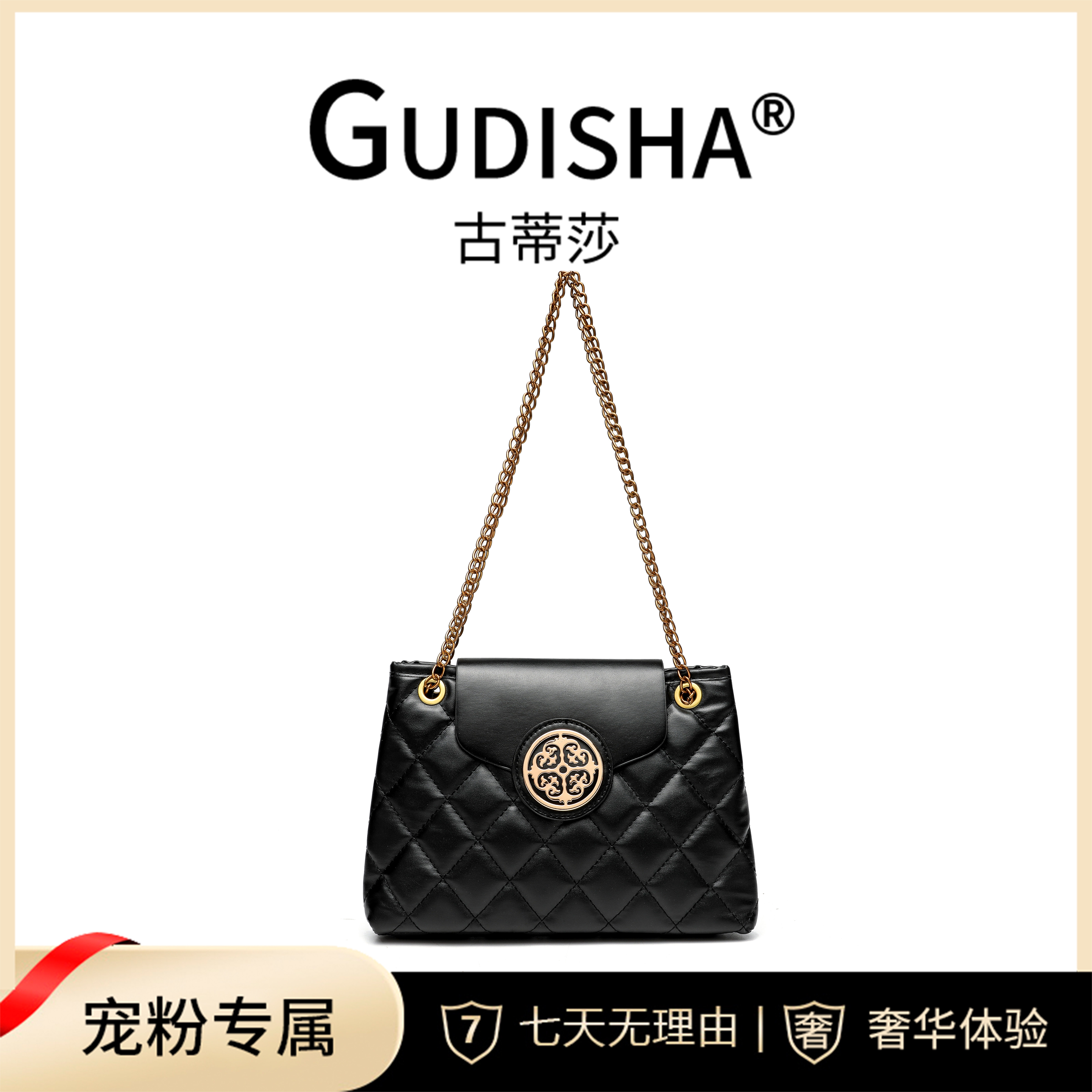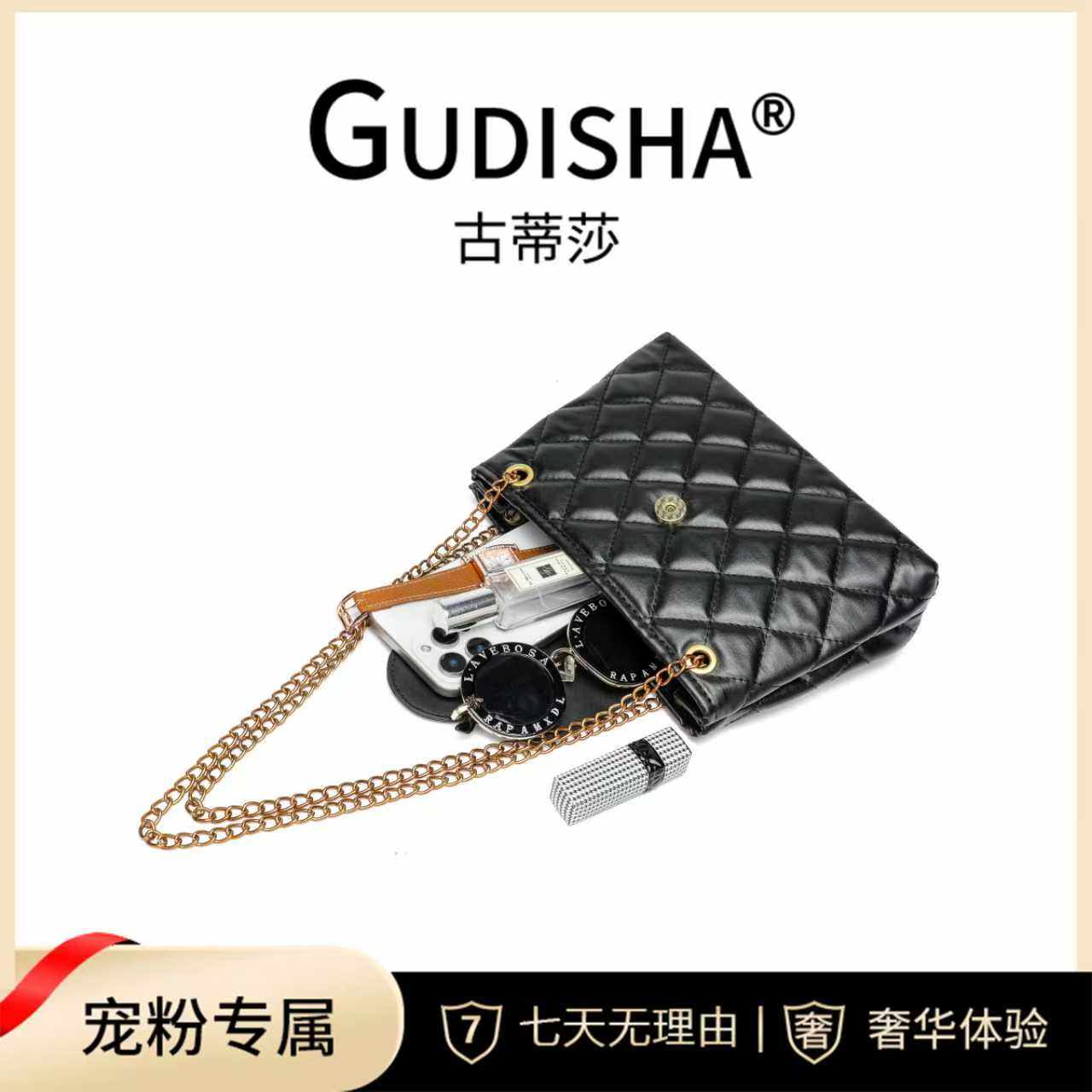高级黑 绣花菱形格 潮流托特单肩包 8003 Gudisha
