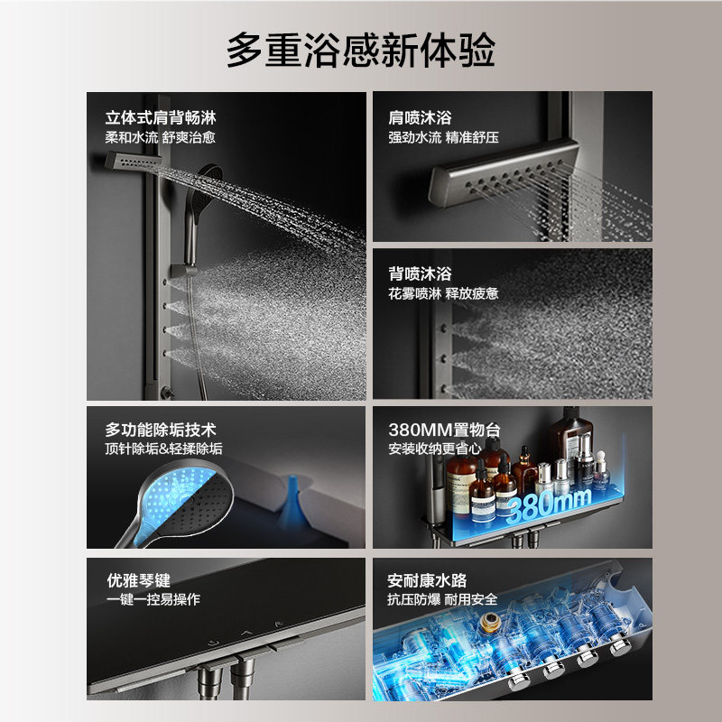 安华卫浴普通花洒套装 家用淋浴花洒组合增压喷枪顶喷置物架淋浴器