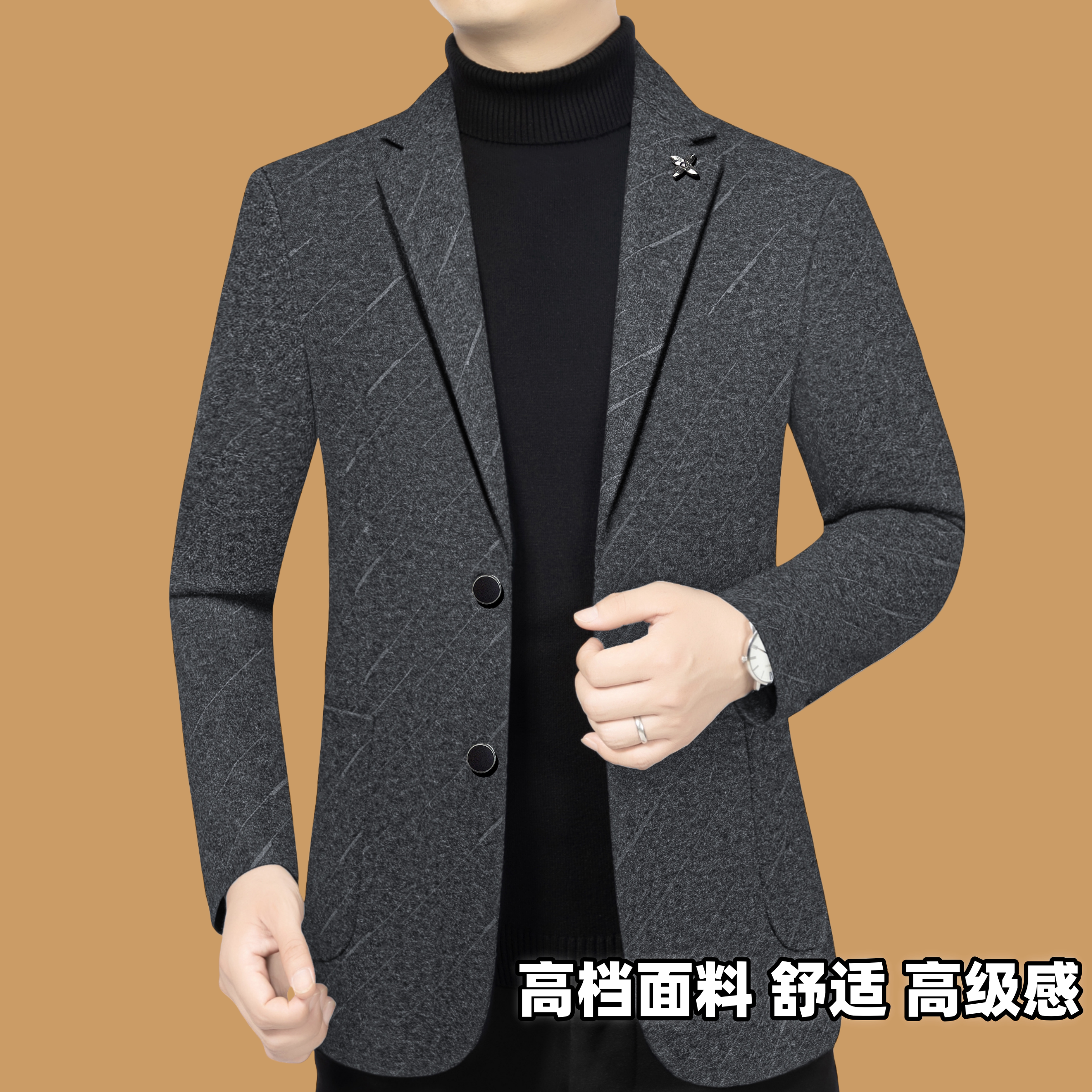 外套春秋季 高级感爸爸西装 新款 韩版 商务休闲修身 皮尔卡丹西服男士
