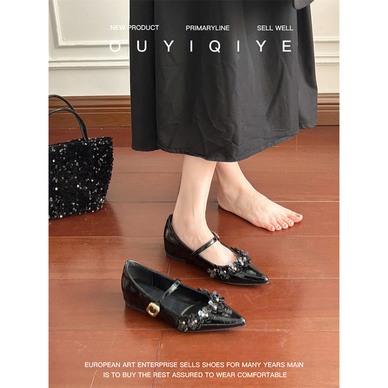 法式 平底浅口单鞋 气质尖头玛丽珍鞋 一字带时尚 女内增高鞋 羊皮版