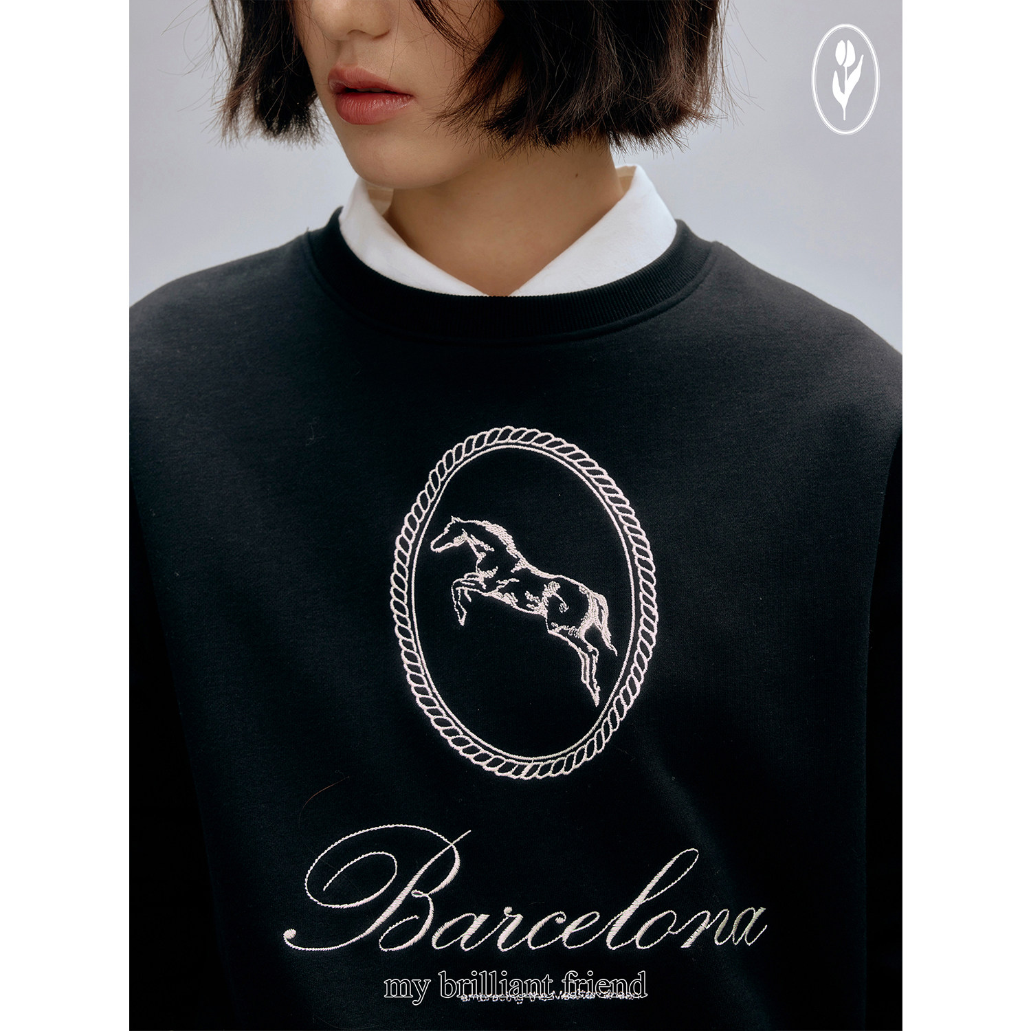 shyshy 手绘棉质两色重工刺绣圆领定制罗纹不变形卫衣 飞驰小马