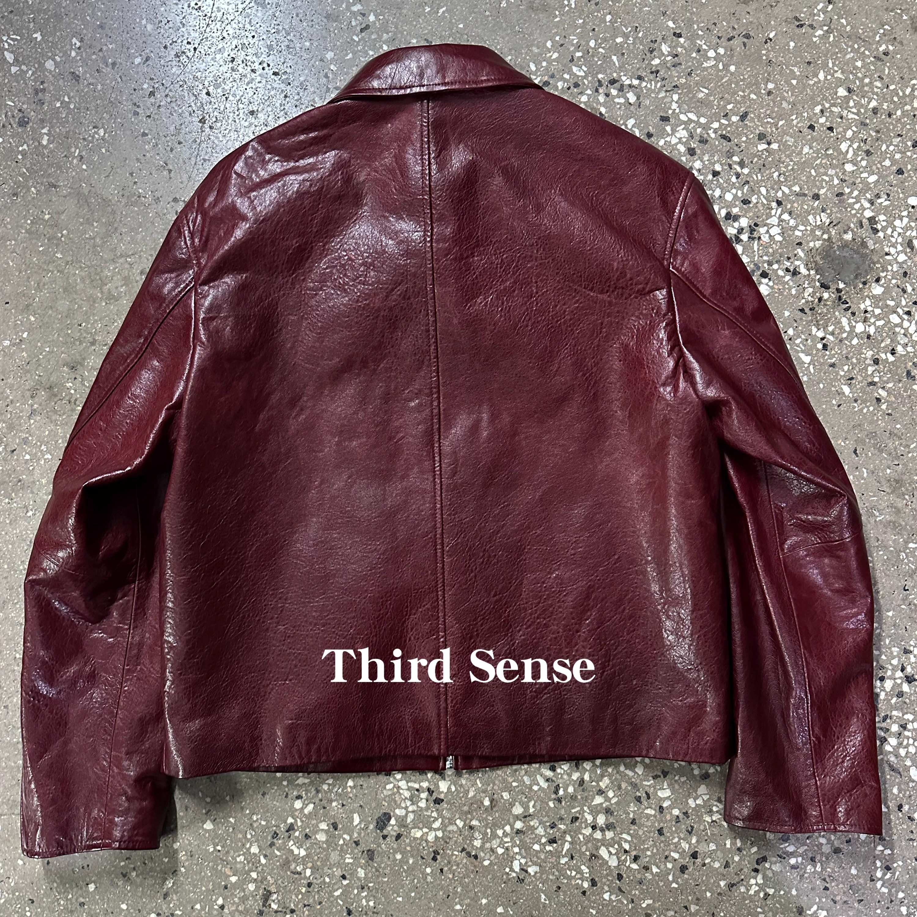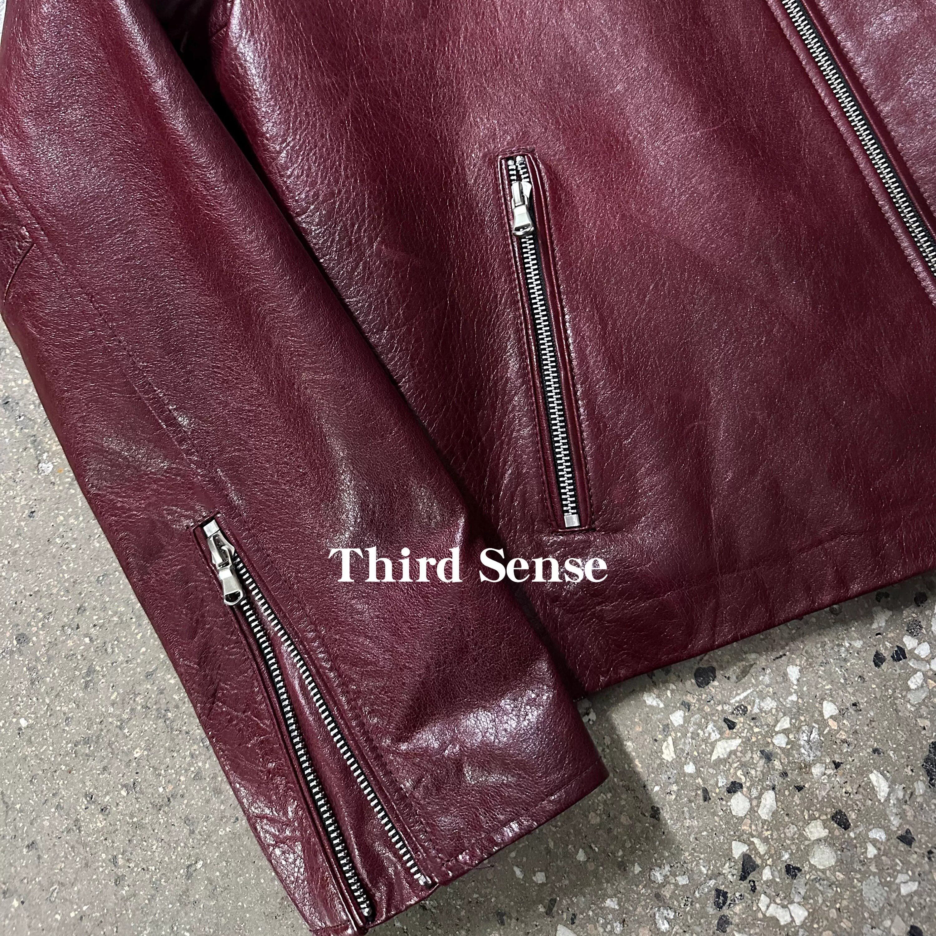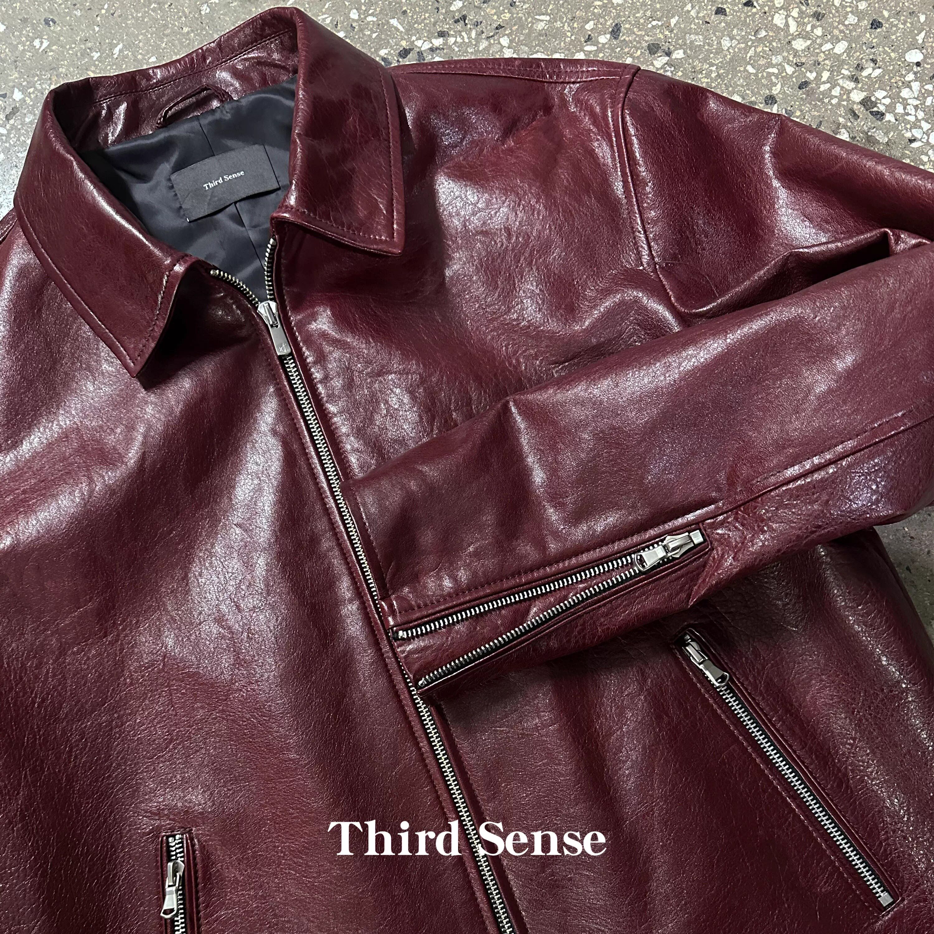 Third酒红色真皮翻领夹克新西兰羊皮泡皮