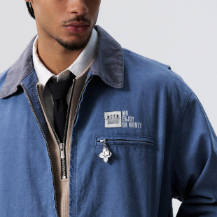 复古百搭拉链情侣外套春秋 水洗底特律休闲翻领夹克美式 MEDM 薄款