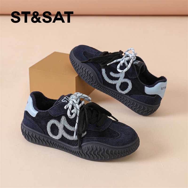 休闲增高平跟板鞋 新款 W9B02CM5 女鞋 TATA他她乌梅子酱加绒德训鞋