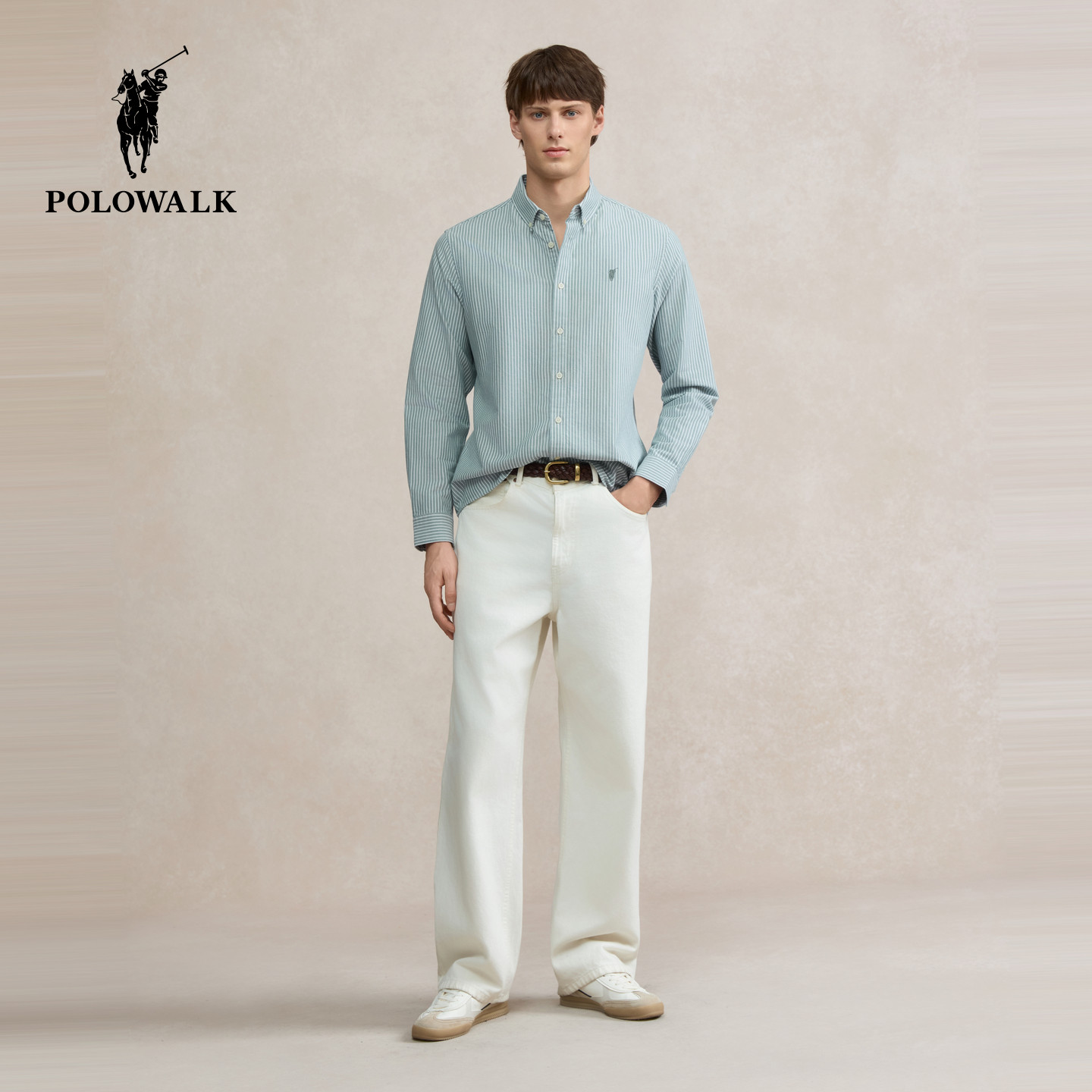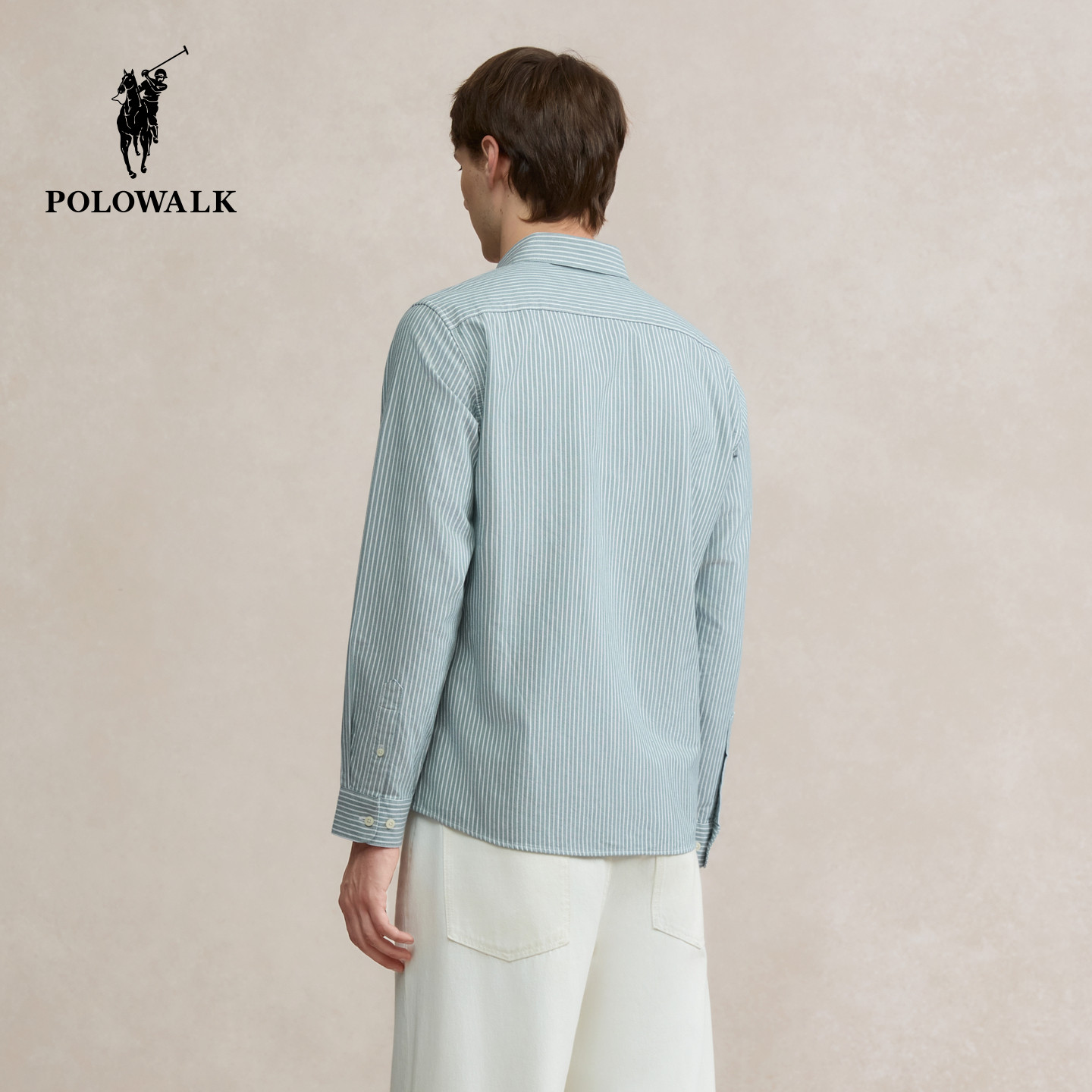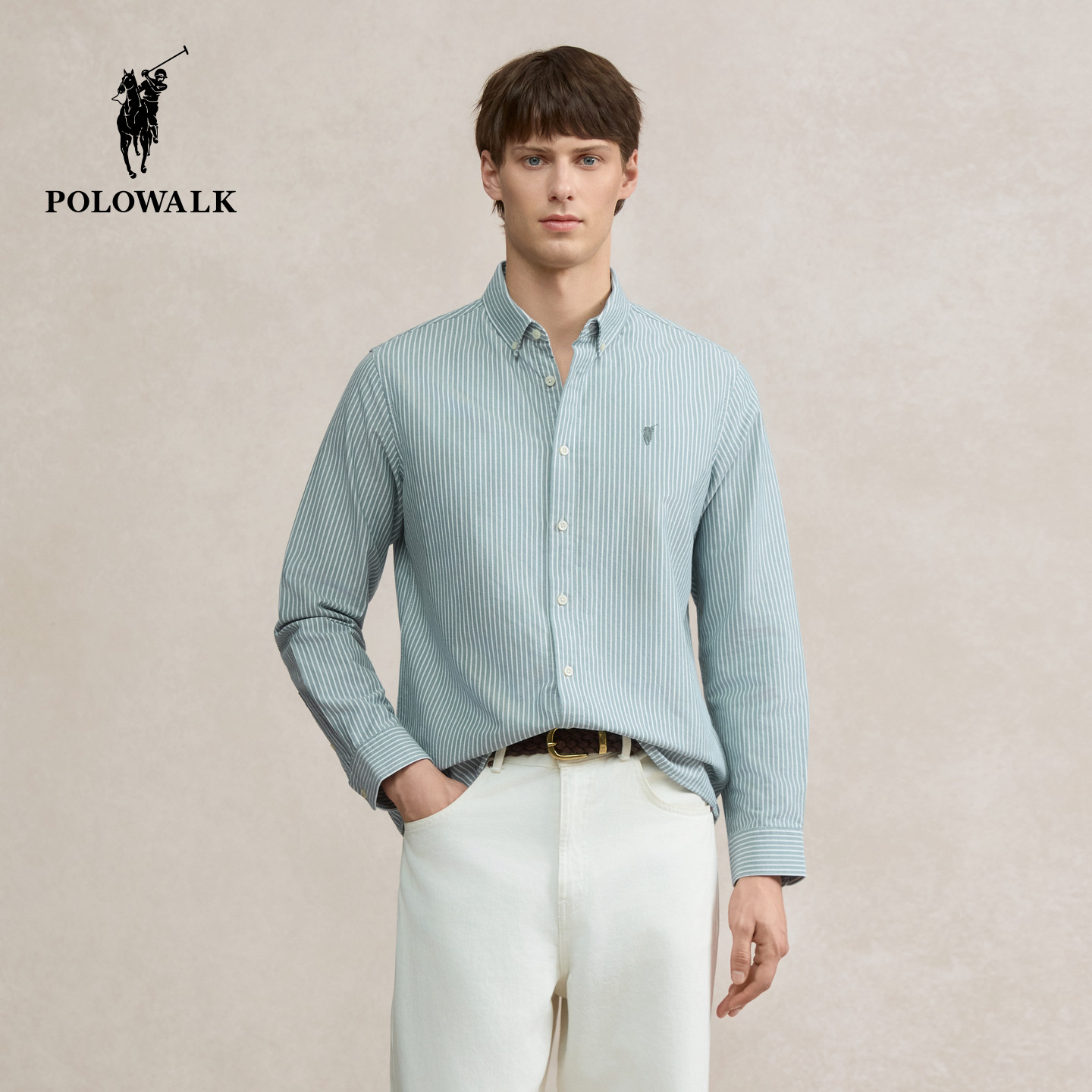 长袖 POLOWALK男式 衬衫 2026春秋新品 衬衣男 条纹翻领开衫 100%棉