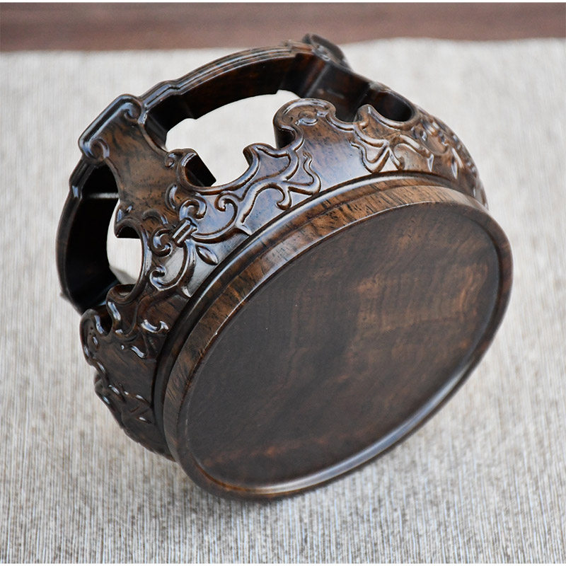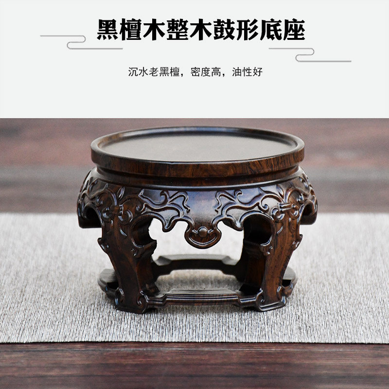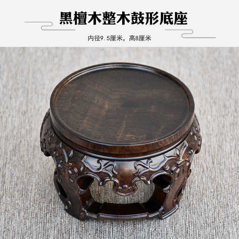 实木圆形奇石底座花盆雕花新中式 鱼缸东阳摆件工艺品木雕仿红木架