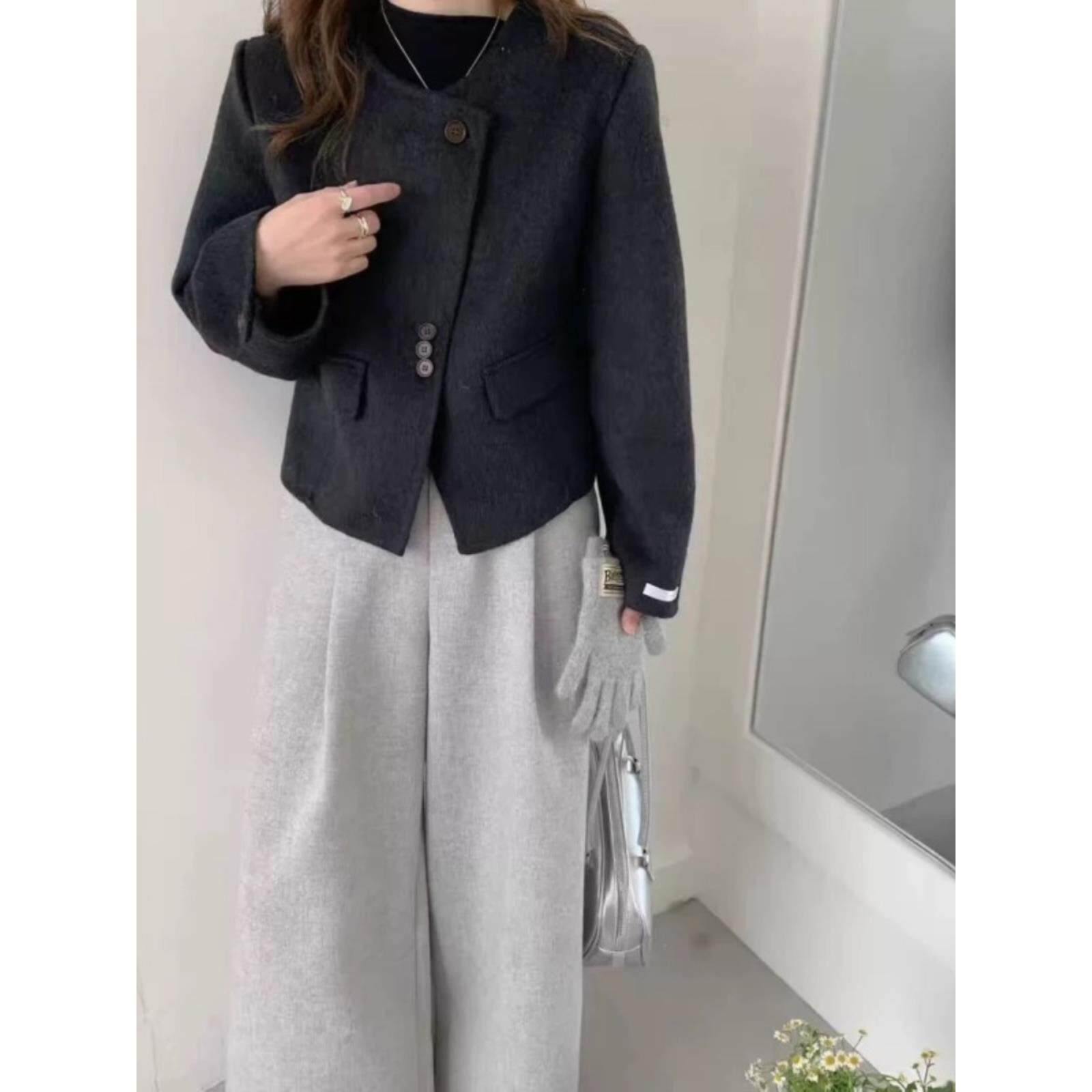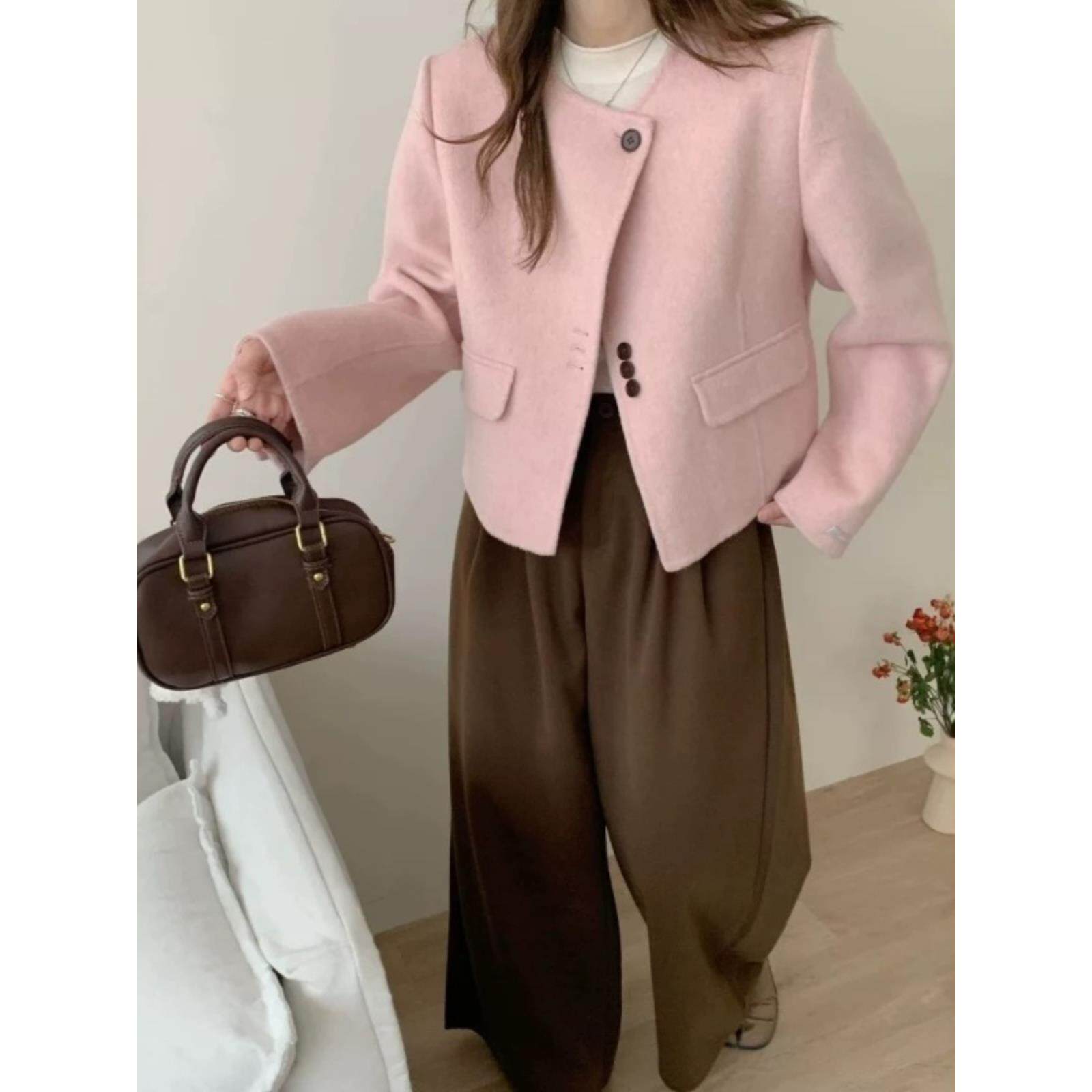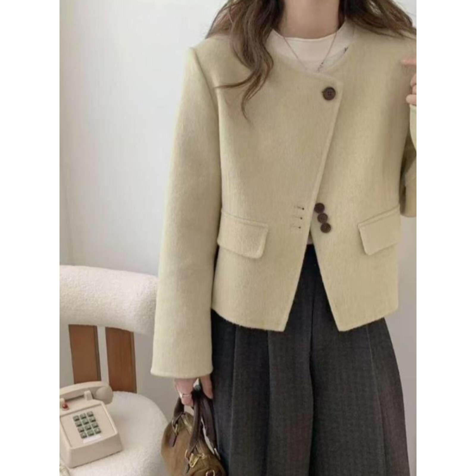 2025秋冬新款 小香风圆领韩系减龄显瘦羊毛外套 双面羊毛大衣女短款