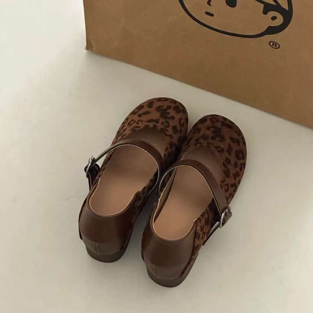 内增高7cm复古豹纹勃肯鞋 女一字扣玛丽珍 女秋冬新浅口芒果头单鞋