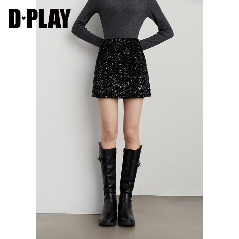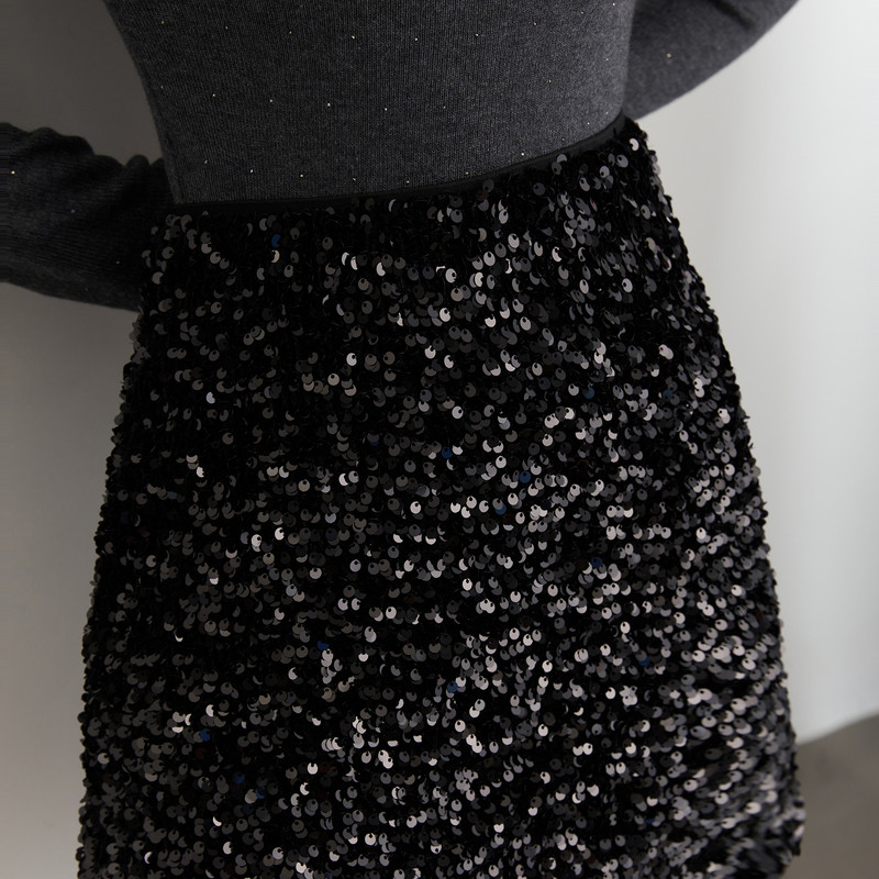 2025秋冬新款 短裙A字百搭亮闪闪显瘦韩系高级感拼色亮片半身裙女