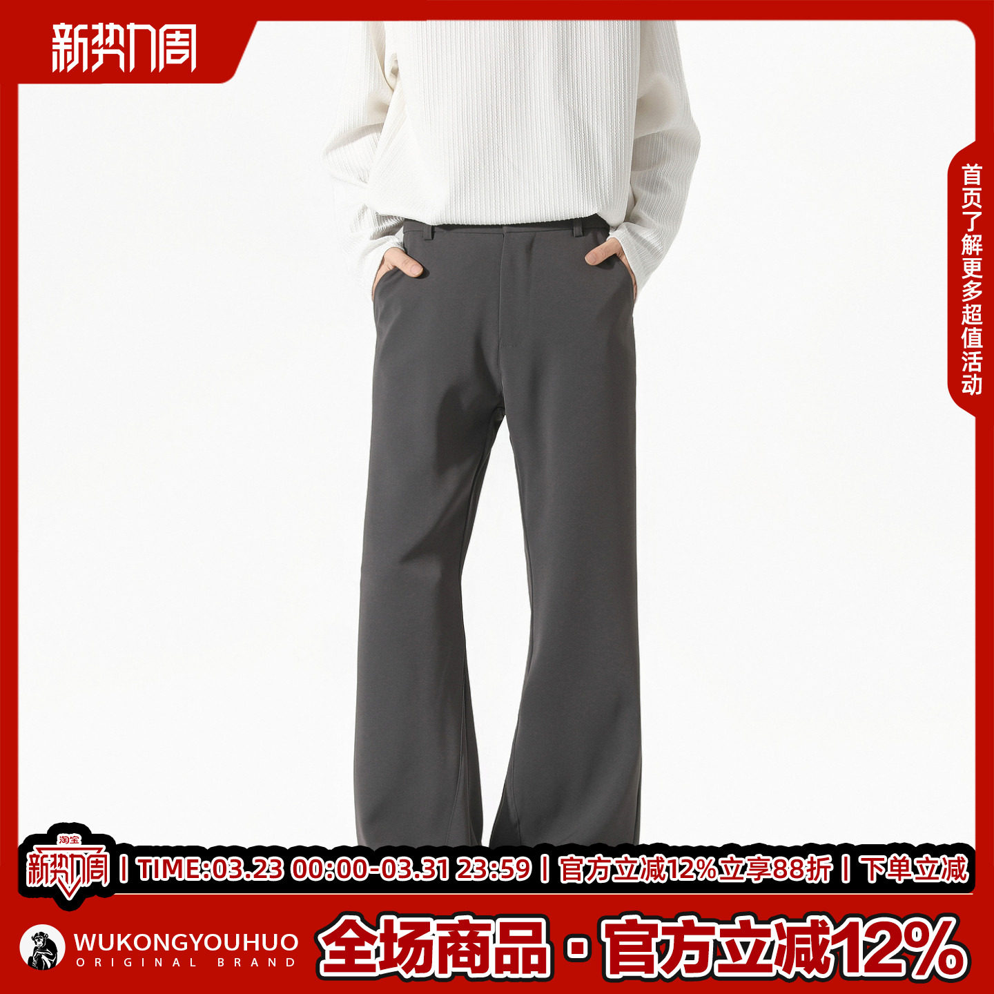 男复古宽松cleanfit百搭长裤 悟空有货美式 潮牌高级感微喇垂感西裤