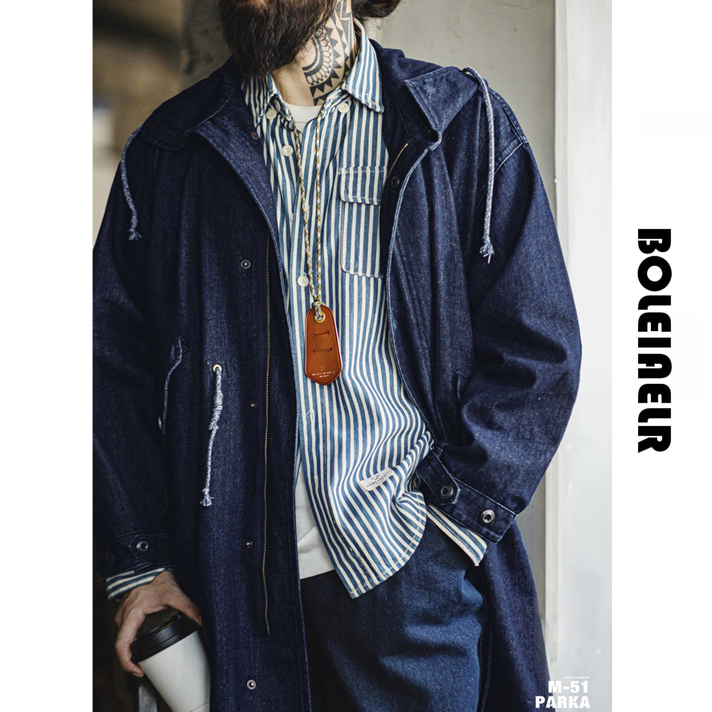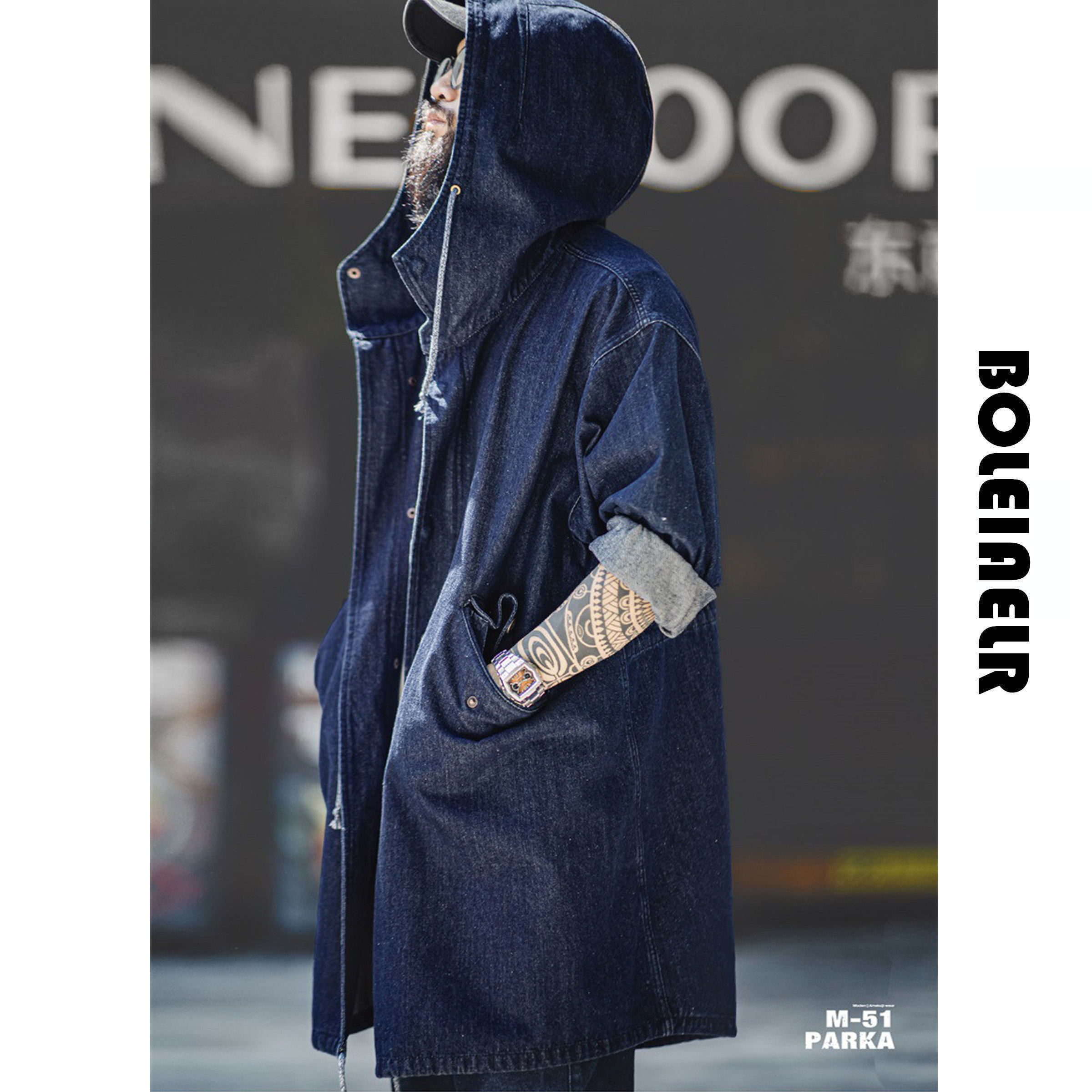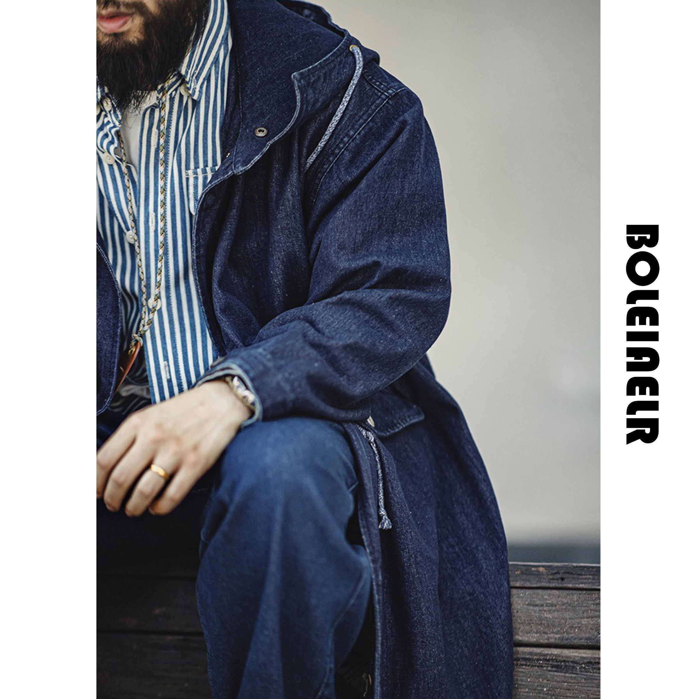 风衣男秋 复古灯芯绒克苏鲁文职大衣宽松外套中长款 马登工装 美式