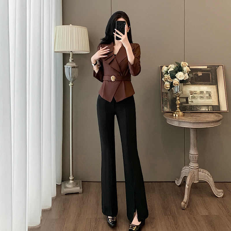 气质御姐风收腰西服上衣高腰微喇裤 女2025秋新款 轻奢职业套装 时尚