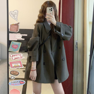 小个子宽松显瘦百搭大衣外套 新款 英伦风双排扣中长款 风衣女春秋装