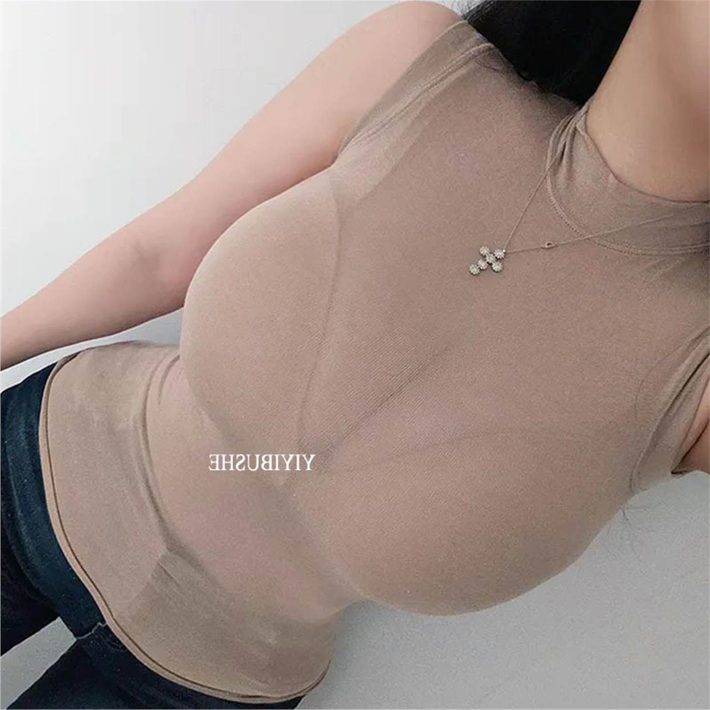 亲肤T恤 很性感小圆领薄透无袖 当天发 51STUDIO自制ZN302韩妹日常