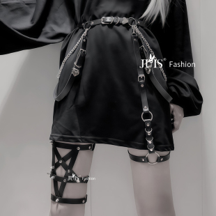 朋克jk腿环辣妹风吊袜带松紧带可调节大腿绑带腿饰脚环铃铛腿链