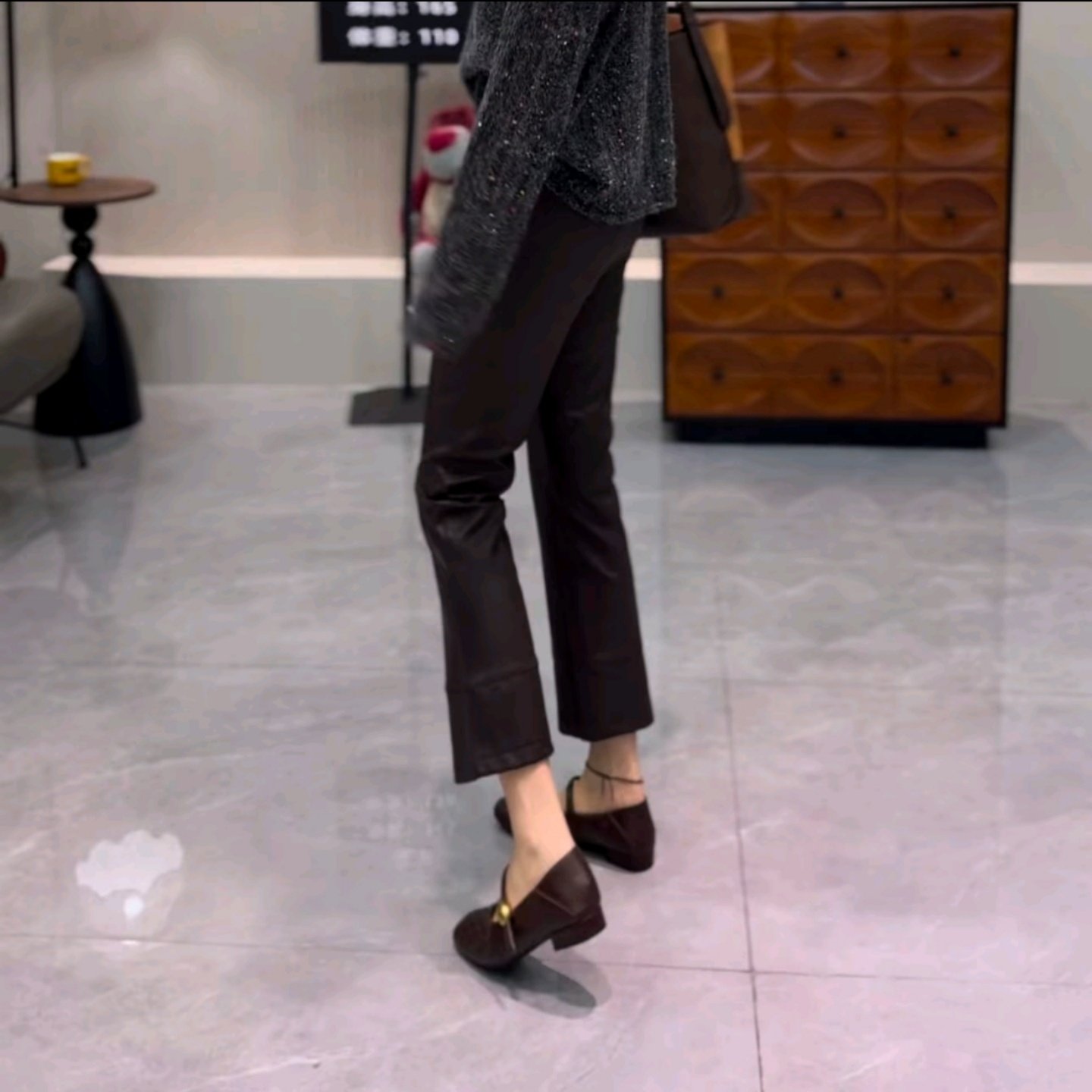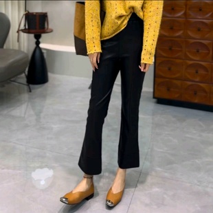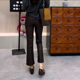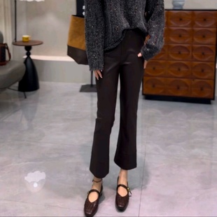 子女水洗PU仿绵羊皮九分裤 欧货百搭显瘦蛋白皮微喇叭裤 新款 秋季