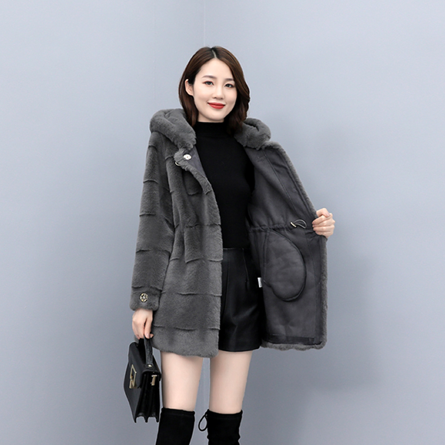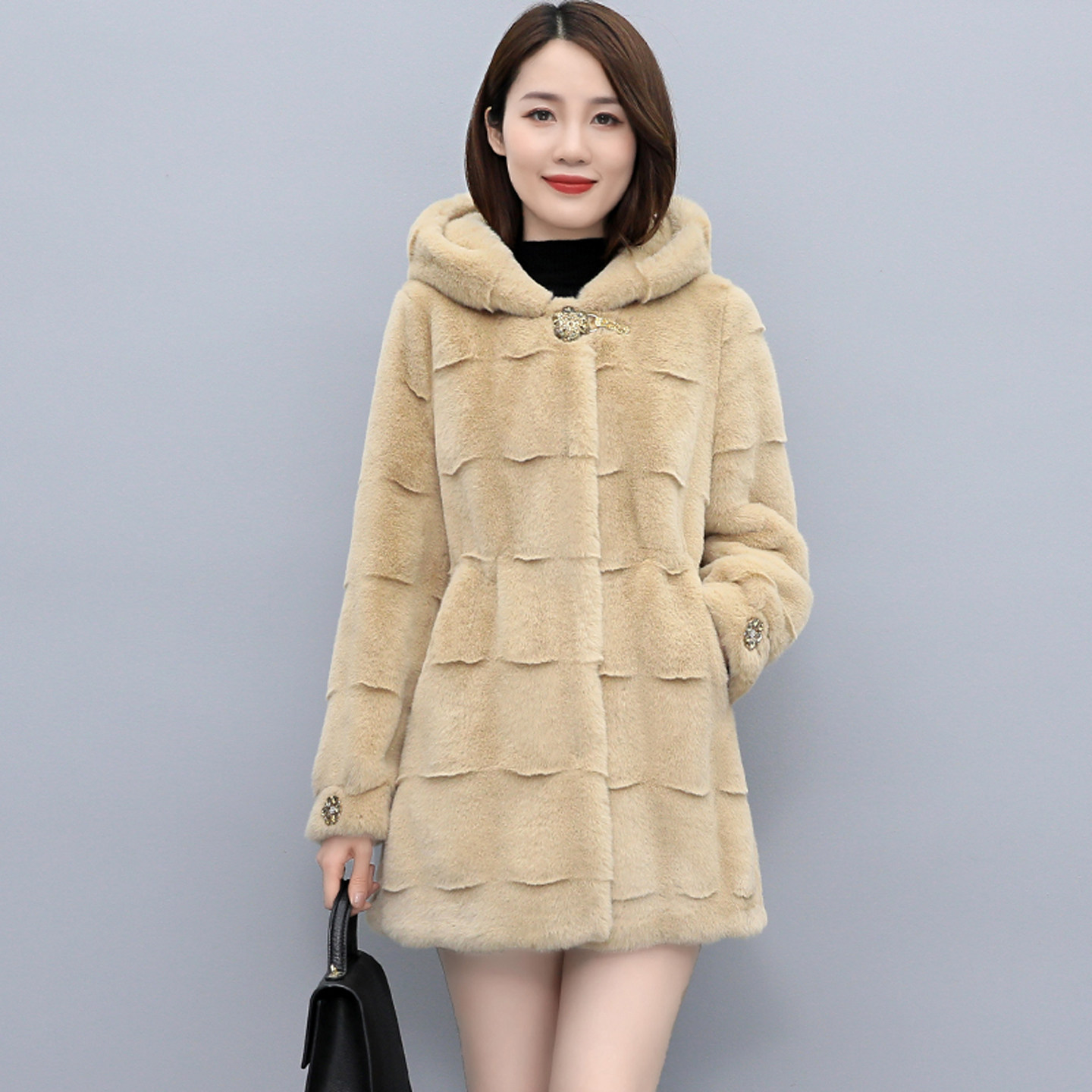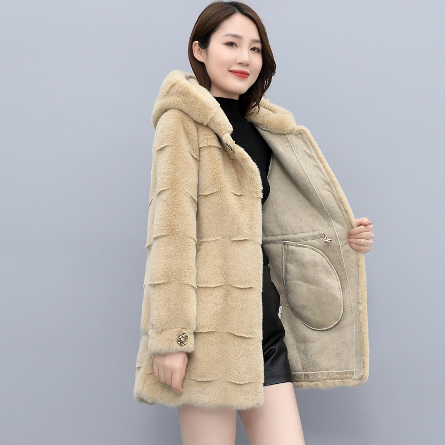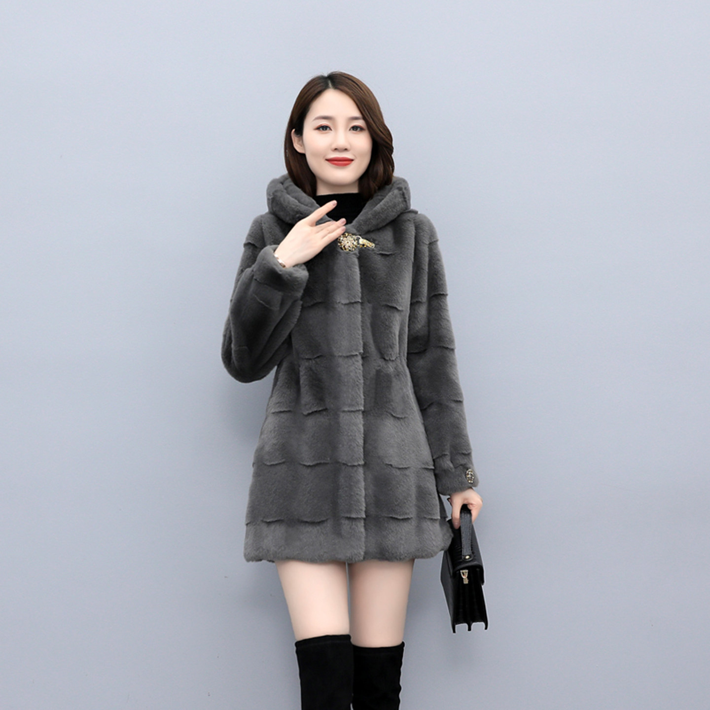 海宁皮草水貂毛外套女修身 连帽皮毛一体整貂皮女小母貂大衣 中长款
