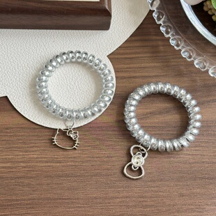 正版 电话线发圈手链可爱KT猫发绳少女头绳扎马尾橡皮筋 凯蒂猫新款
