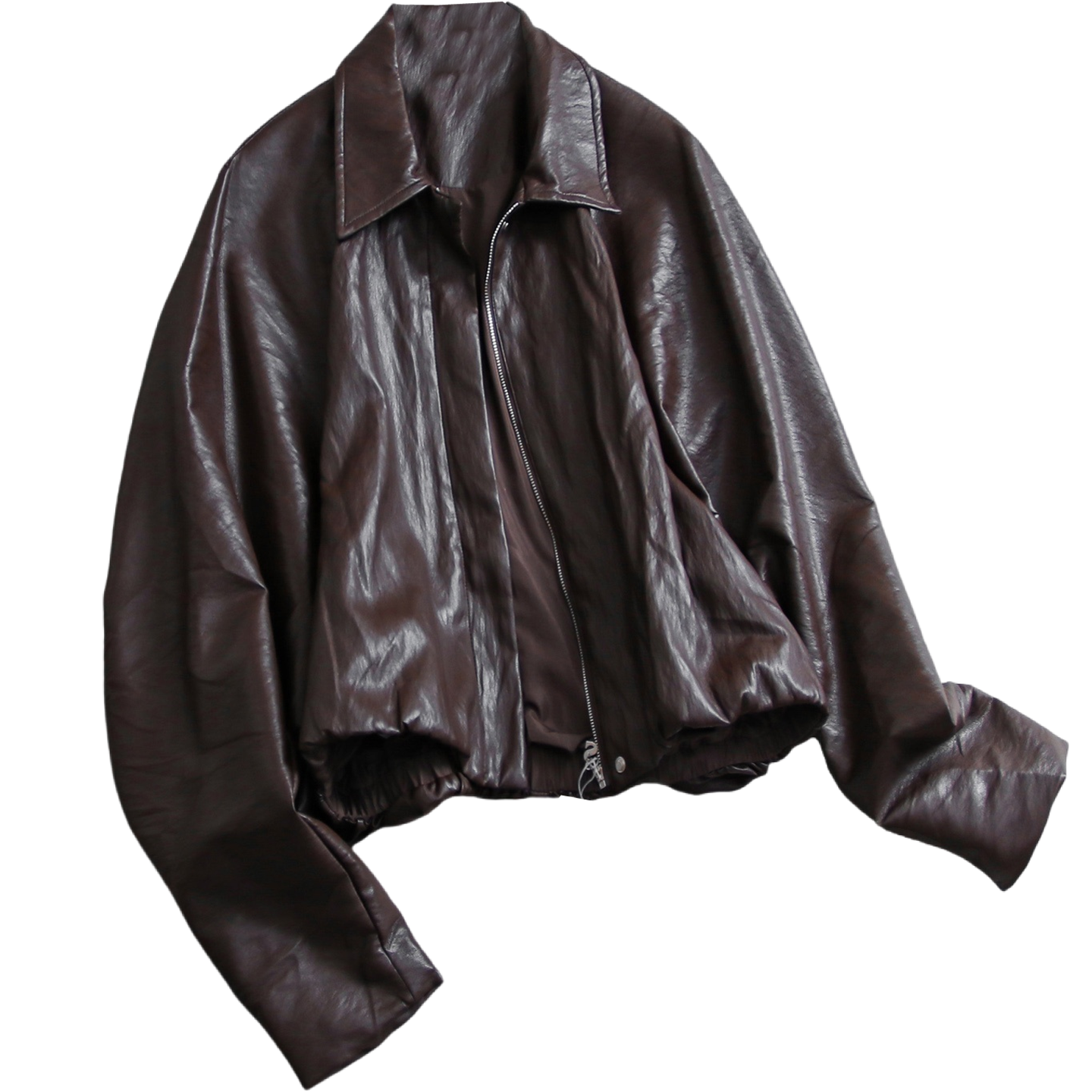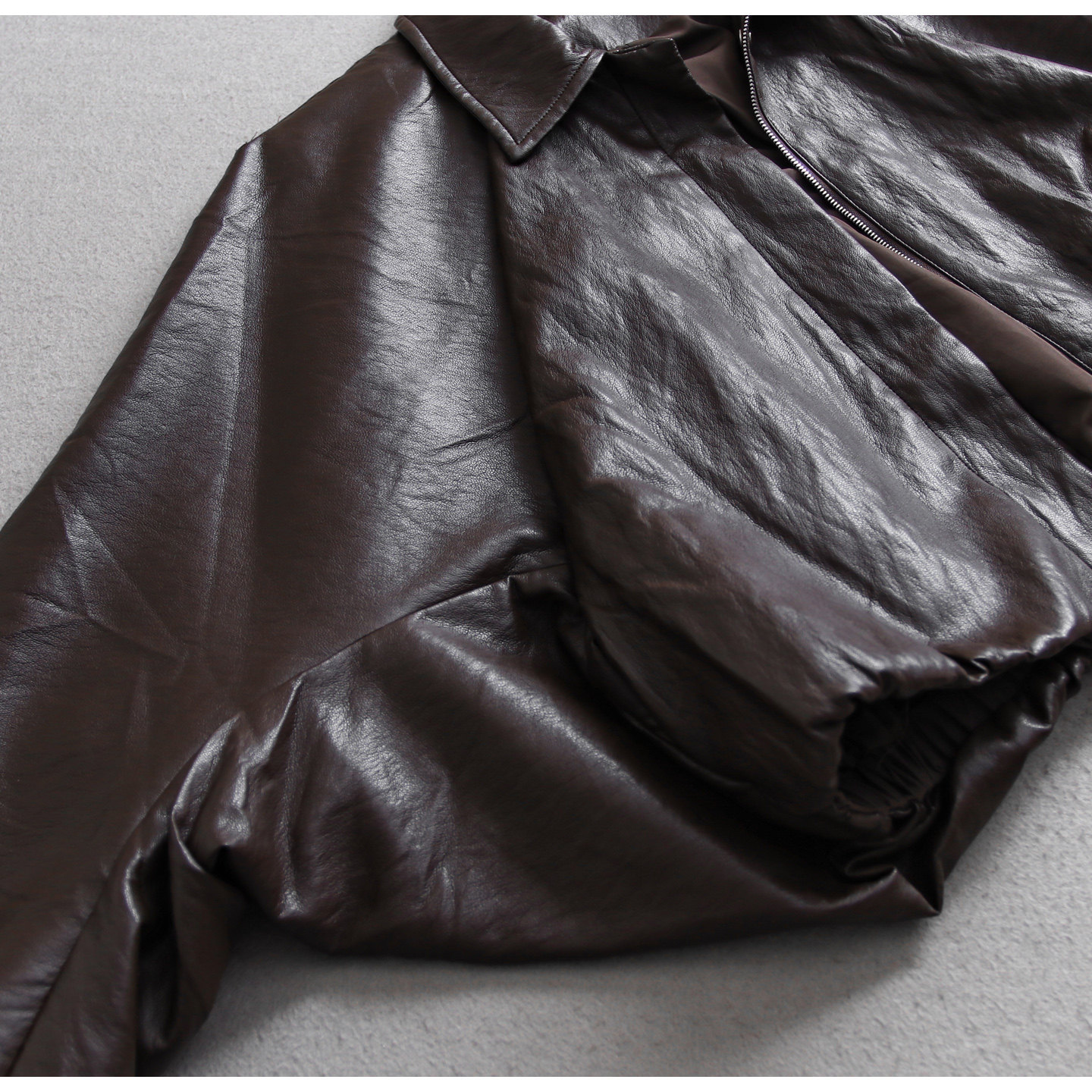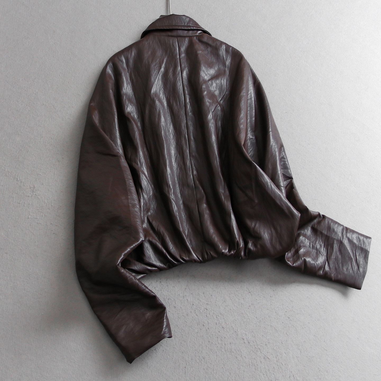 pusumede 复古翻领PU皮夹克女宽松休闲廓形拉链皮衣外套 佛里时报