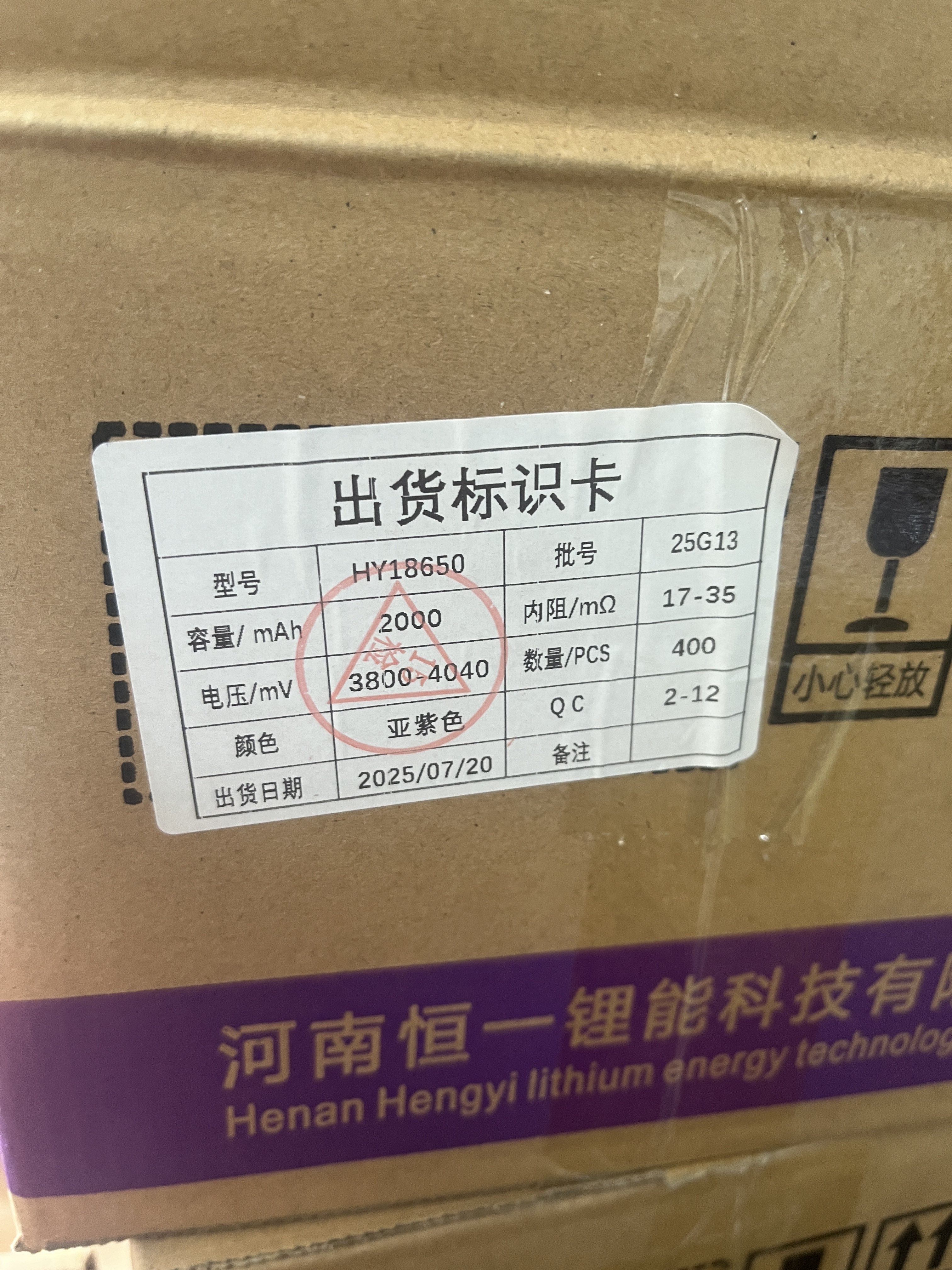 全新恒一18650锂电池2000mAh2C放电3.7V手电筒移动电源小风扇头灯