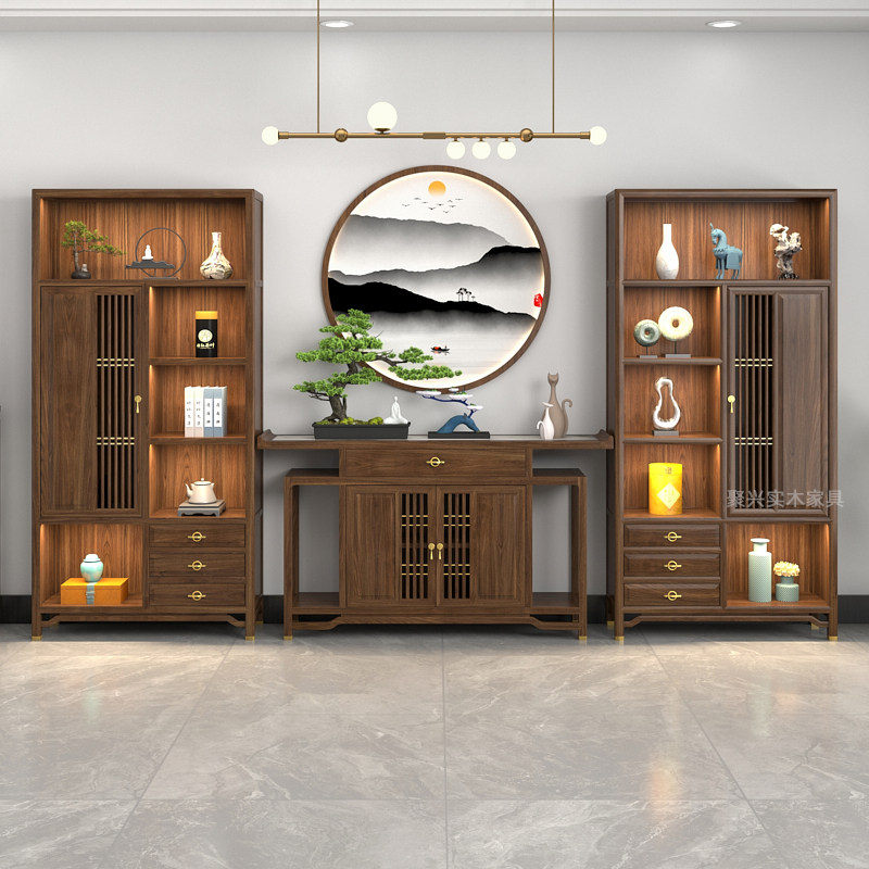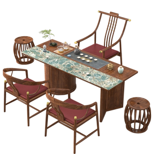 新中式 胡桃木茶桌椅组合家用客厅简约办公室功夫实木泡茶台一体