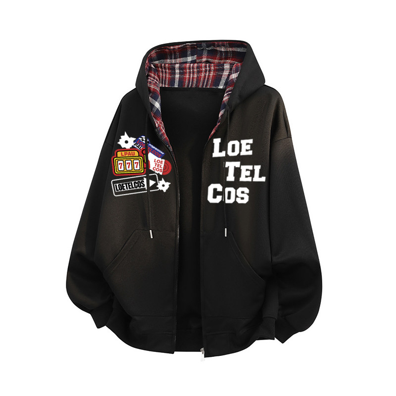 开衫 国潮复古卡通涂鸦拼接撞色经典 拉链连帽卫衣 ISLAND SMILE