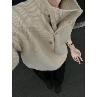 针织打底衫 品牌高级感羊毛衫 女半高领宽松毛衣秋冬加厚羊绒长袖